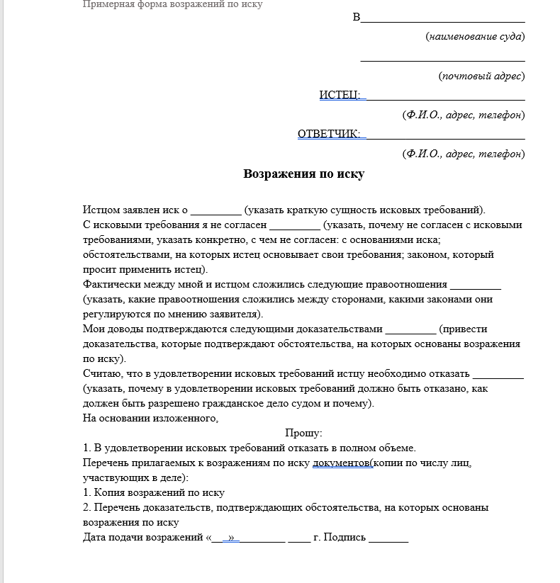 Возражение в арбитражном процессе образец 89 фото