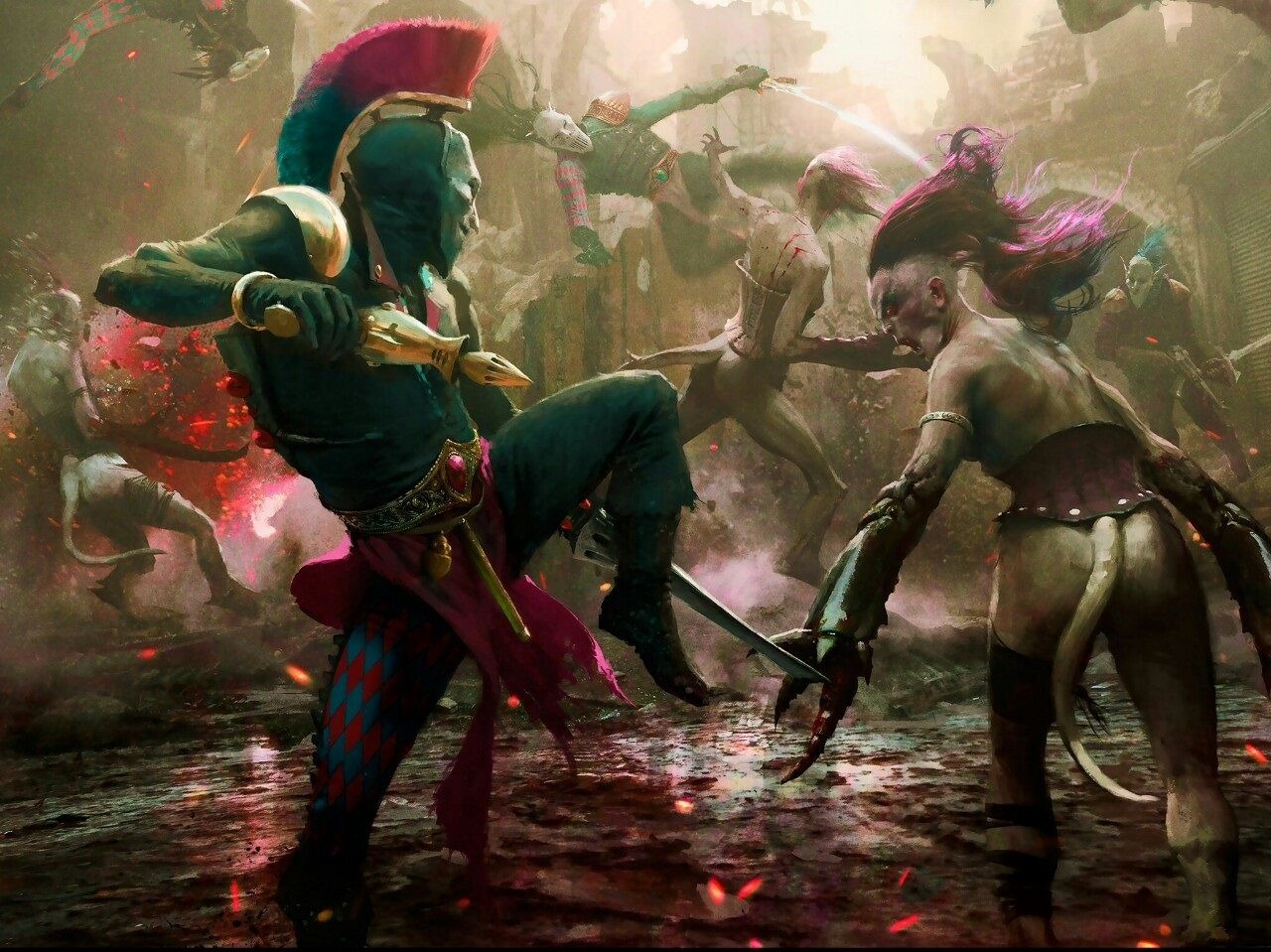 У арлекинов была своя тайная роль в разворачивающейся пьесе судьбы эльдари. Они долгое время противостояли Слаанеш, и некоторые среди них уже давно переметнулись на сторону Перерождённых. Некоторые вообще видели связь возвышения иннари с пророчеством кристального тома Цегораха, раскрытого после огненной смерти мира Дюриэль. Последние страницы древней книги давали повод предполагать, что Слаанеш можно не просто победить, но и обратить против неё самой же. Кто-то же из их числа утверждал, что возлагать свои надежды и доверять свои души богу, которому ещё только предстоит проявиться – это всё равно, что пройти над пропастью по изрезанному канату, или нырнуть на дно океана в надежде найти единственную нужную жемчужину. Но перед лицом страшнейших проблем вера процветает.