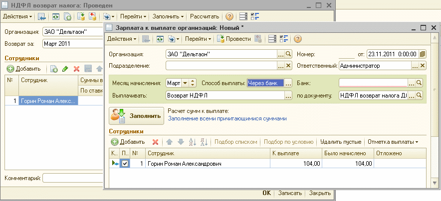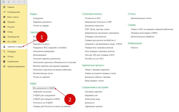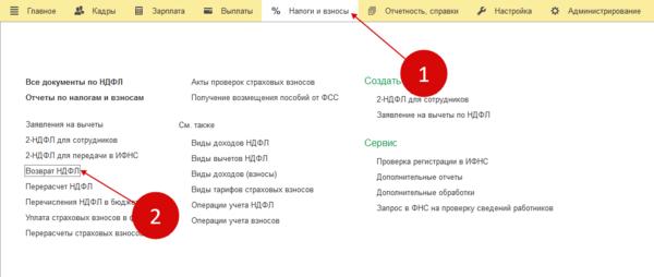 Возврат ндфл в 1с 8.3