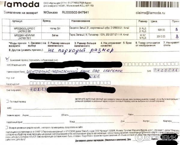 Возврат средств ламода