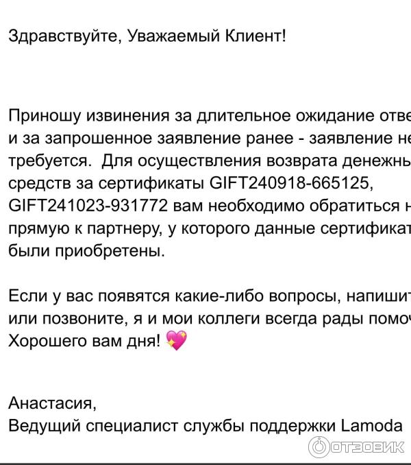 Возврат средств ламода