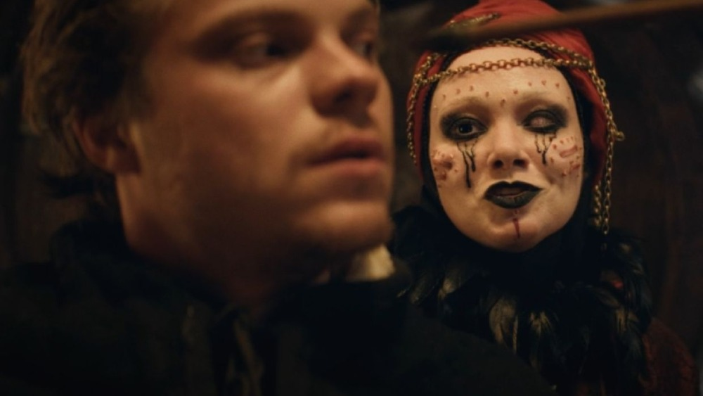 Шут. Интересное, но слегка клишированное для меня решение создать альтер эго, которое будет склонять Горшка к суициду и "панку", чтобы он умер легендой, а не дедом. Как раз маленький таракан, что дергает за нервы мозга. Но в как же он неоправданно противен в некоторые моменты, выкрученная на максимум тарантиновская жестокость тут иногда крайне сильно реже глаз, а существование этого персонажа в некоторых сценах крайне лишнее. Хотя, быть может, этого и добивались сценаристы - создания психического расстройства, которое не будет появляться тогда, когда тебе удобно. Шут - один из самых нормальных костюмов Сказки в сериале, хотя иногда и выглядит неуместно.