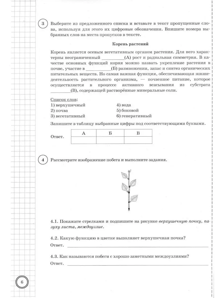 Впр по биологии вариант 4 5 класс