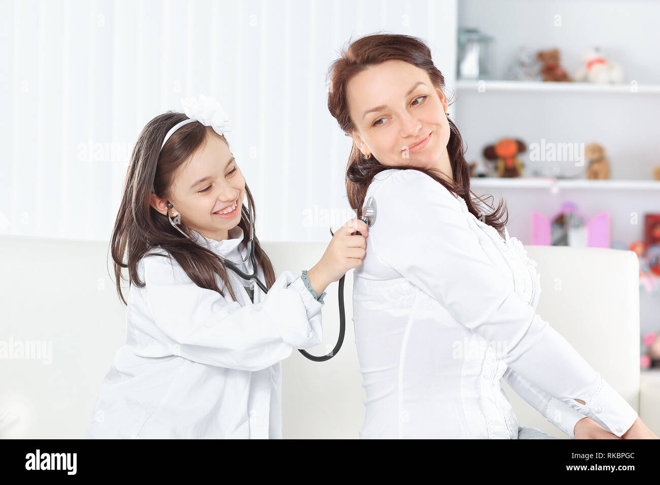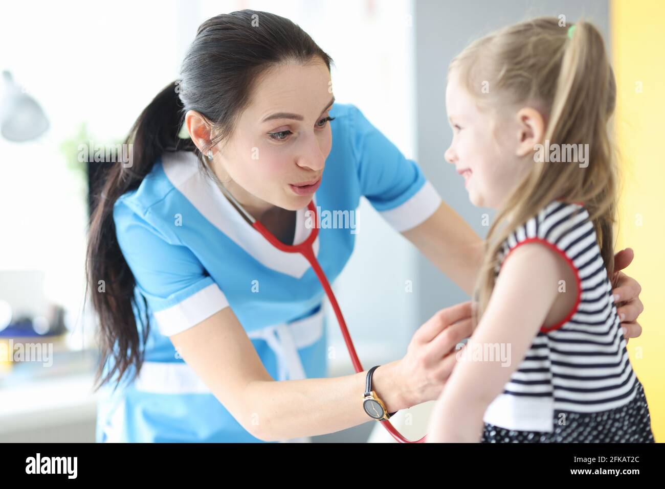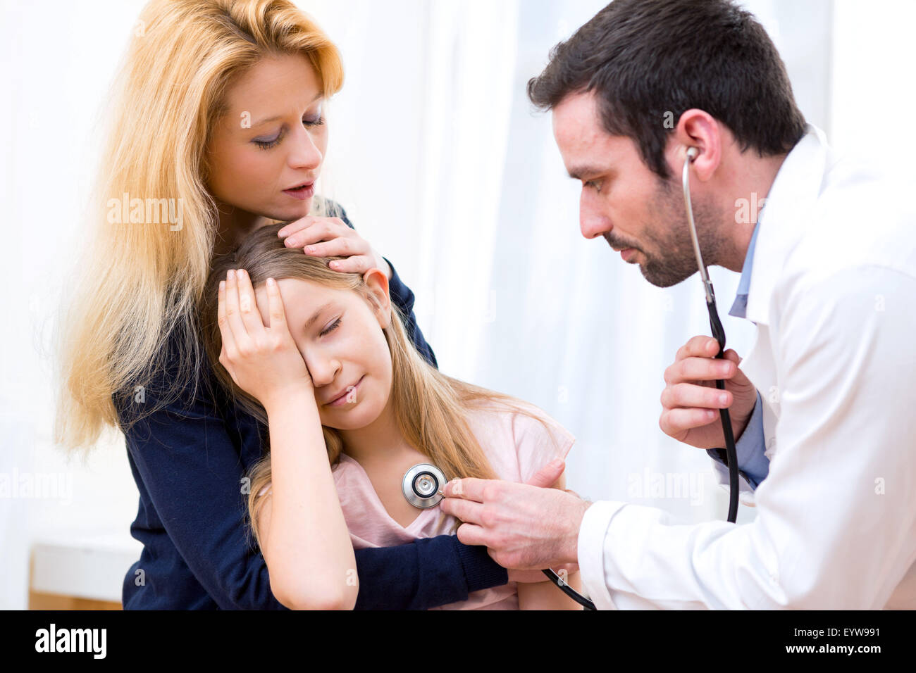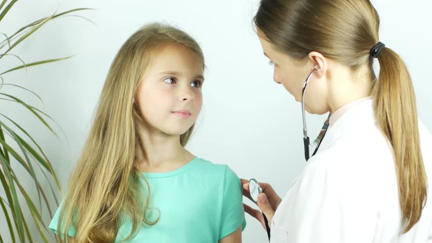 Врач слушает девочку