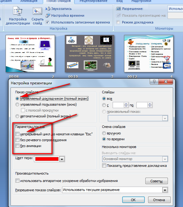 Время показа слайда