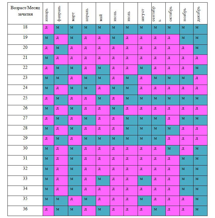 Время зачатия девочки