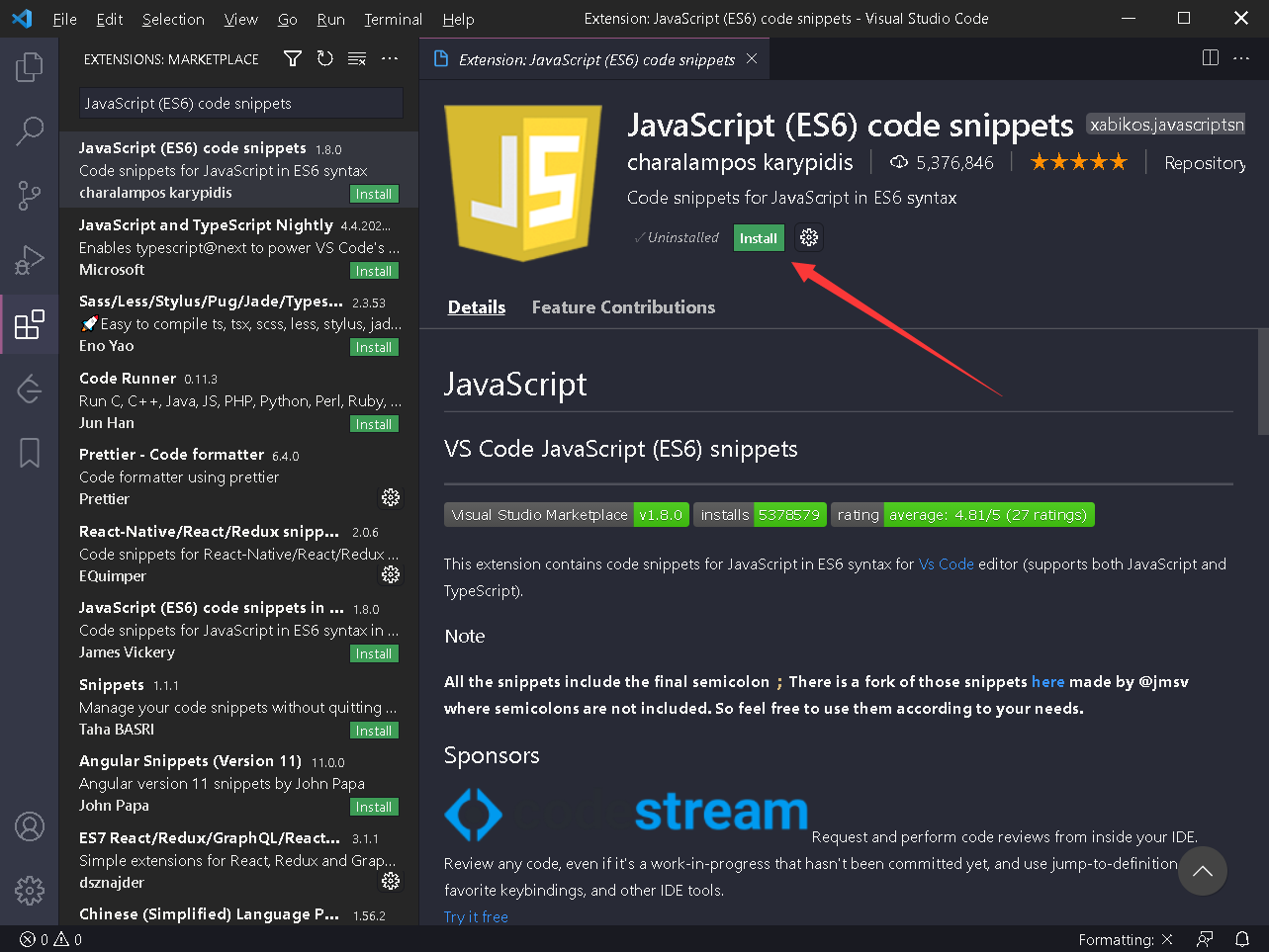 Vs code для js