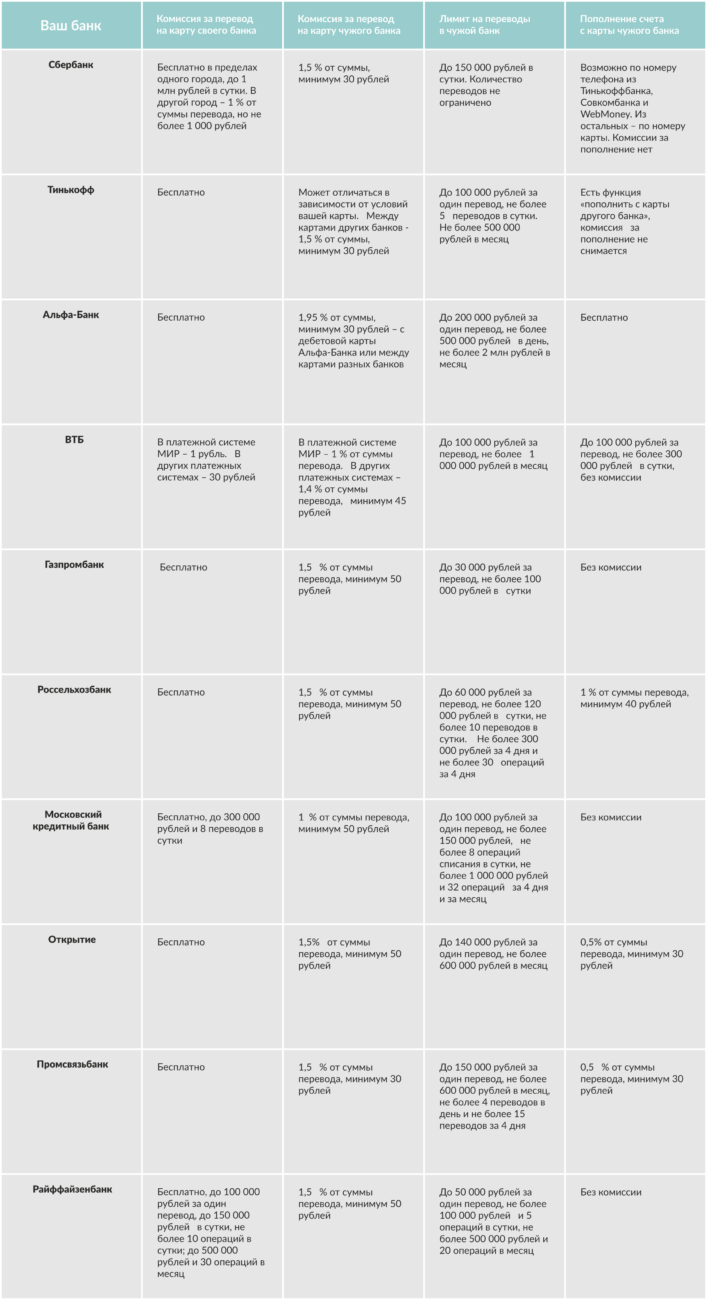 Все банки с переводом