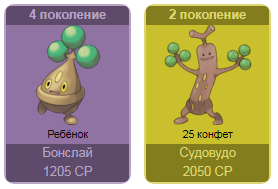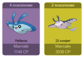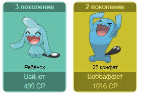 - С вводом новых покемонов цена на эволюцию уже имеющихся изменится. Так, сейчас эволюция Свинаба в Пилосвайна стоит 50 конфет, но после ввода Мамосвайна она станет стоить 25 конфет. Так же произойдёт с Магнемайтом, Райхорном, Поригоном, Тогепи и Даскаллом. Если хотите копить конфеты для следующих эволюций, разумно хранить покемонов в 1 форме.