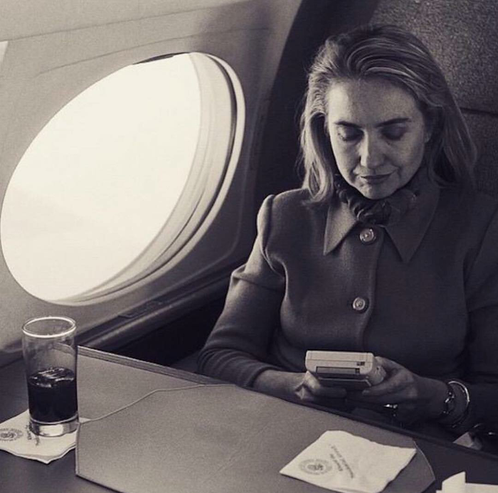 Хиллари Клинтон в самолете, 1993 г.:
