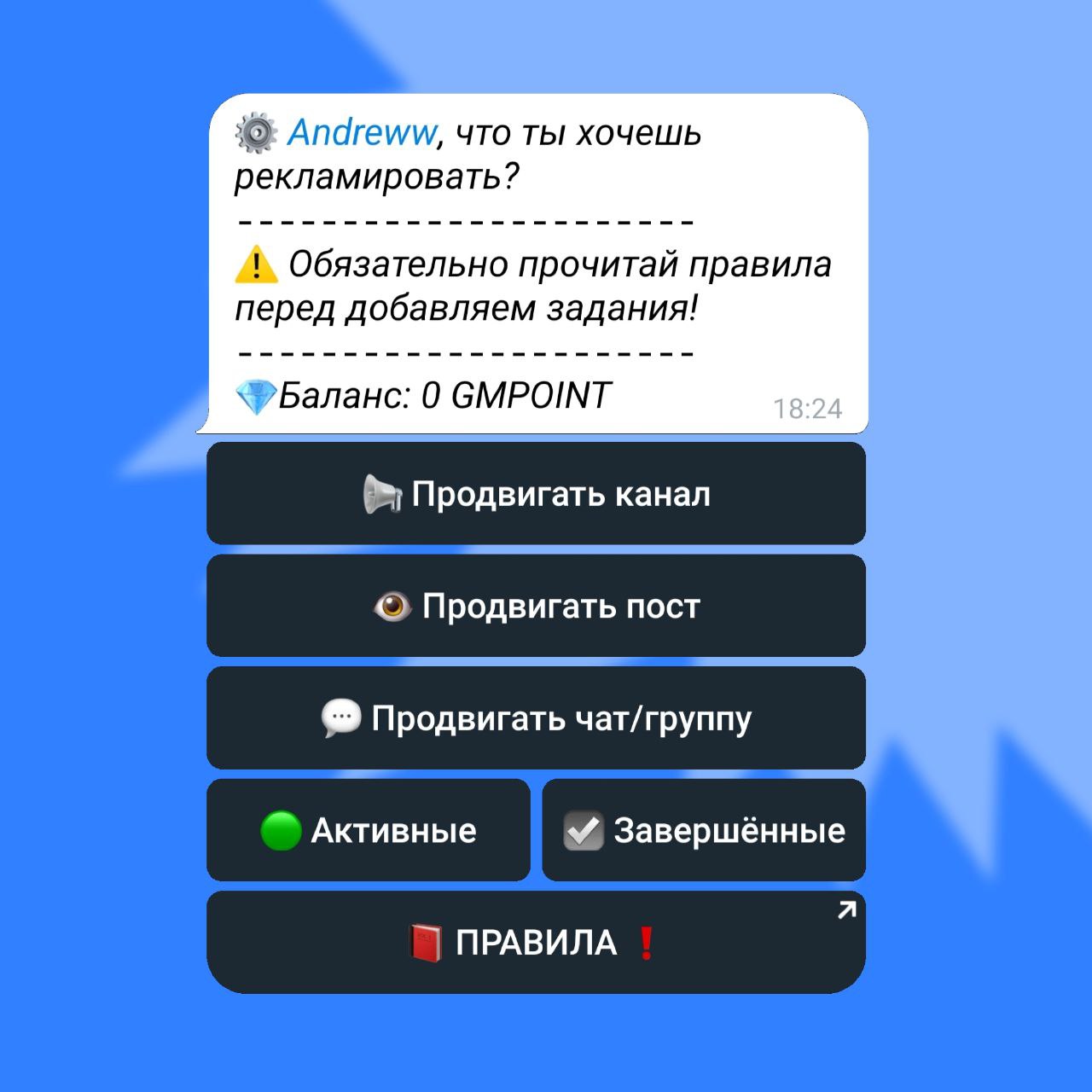 Чтобы продвинуть свой канал, напишите команду /promote и выберите, что хотите продвигать, например, канал. Затем укажите стоимость за одного подписчика и нажмите на кнопку «Выбрать канал», после чего выберите свой канал. Готово! Ваше задание теперь доступно всем.