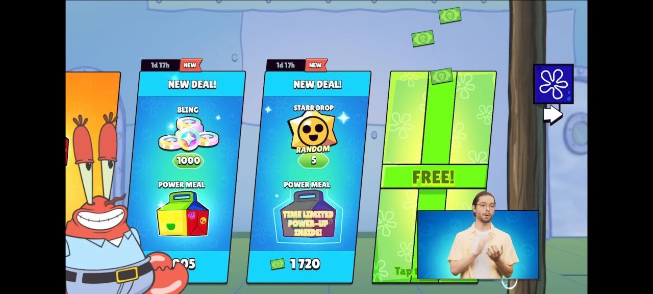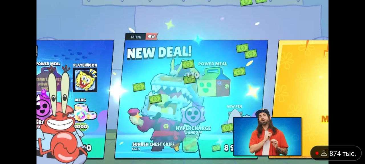на которые вы можете потратить крабсы. Там будут разные предложения, а также скины любимых всеми персонажей из «Губки Боба».