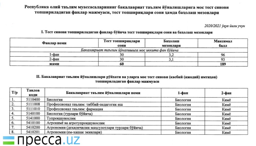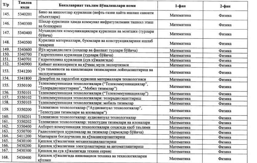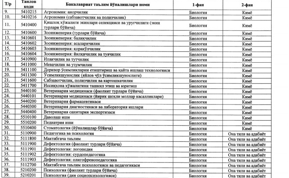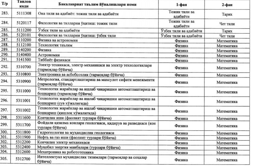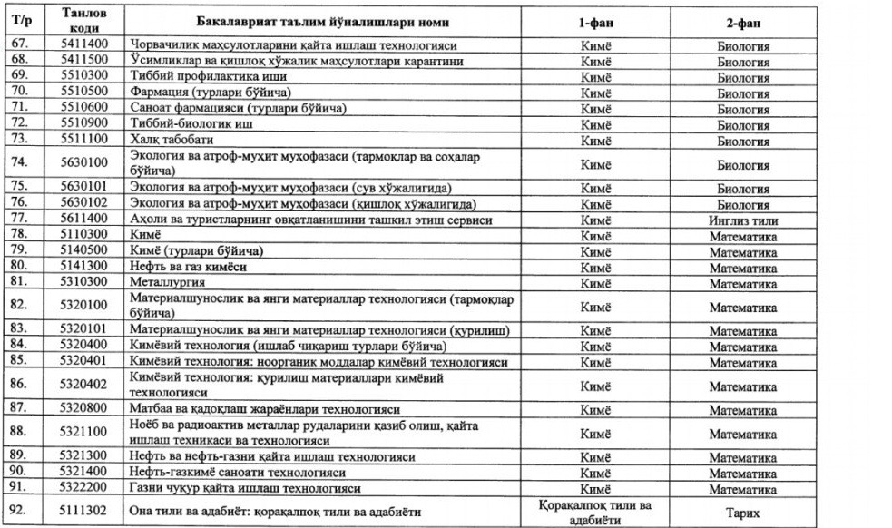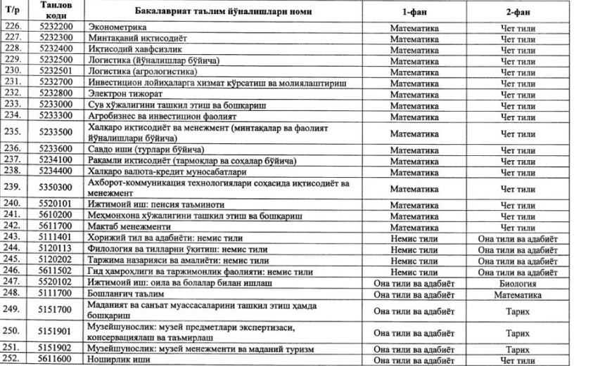 ⚡️ Утверждены новые блоки предметов и соответствующие им направления образования для вступительных тестовых испытаний 2020/2021 учебного года: