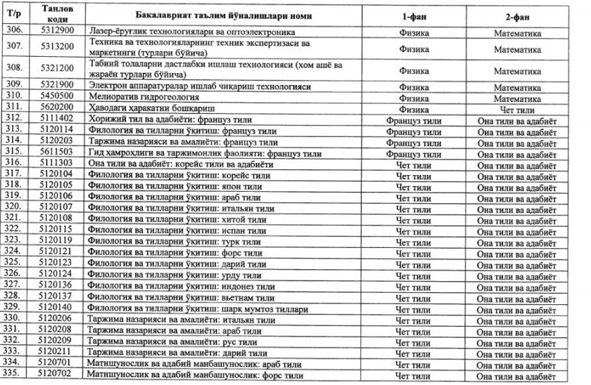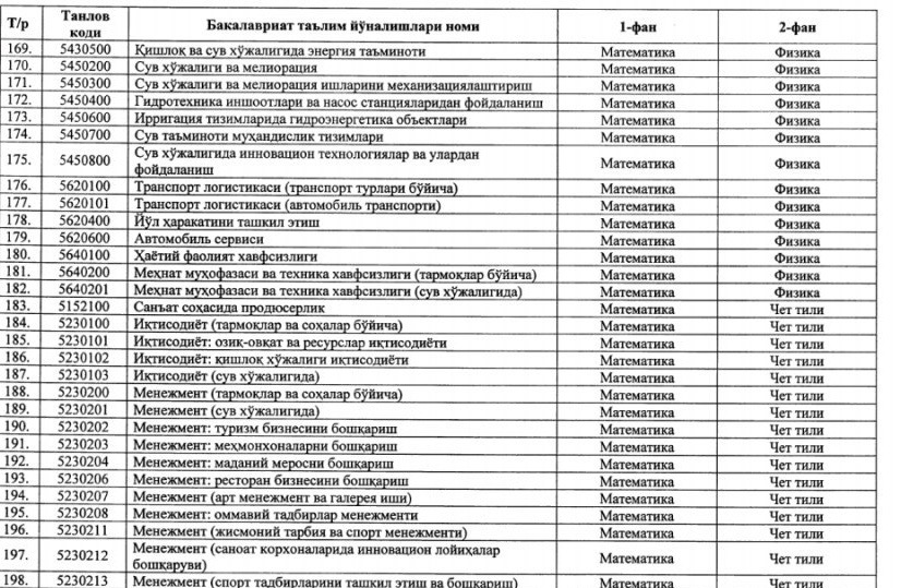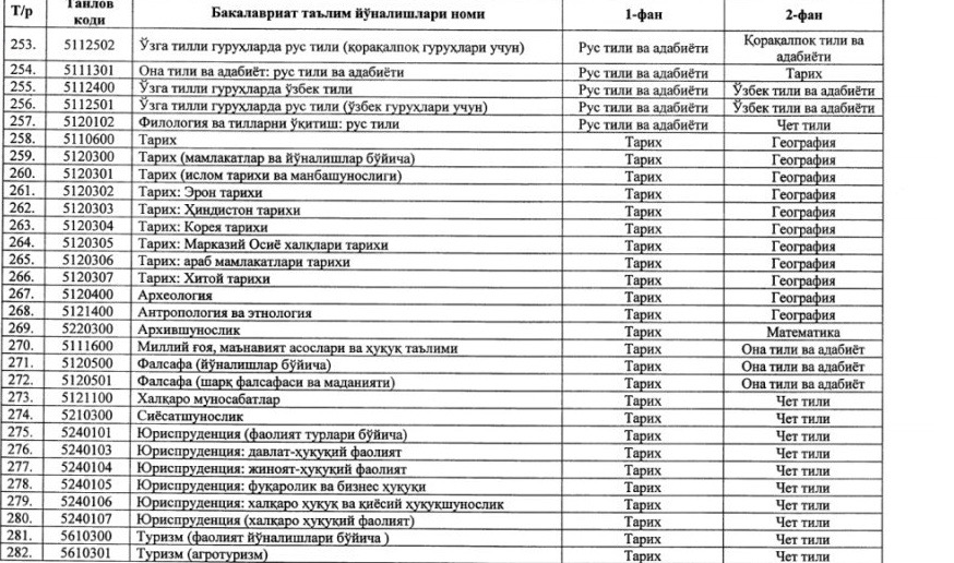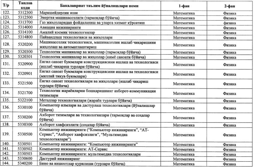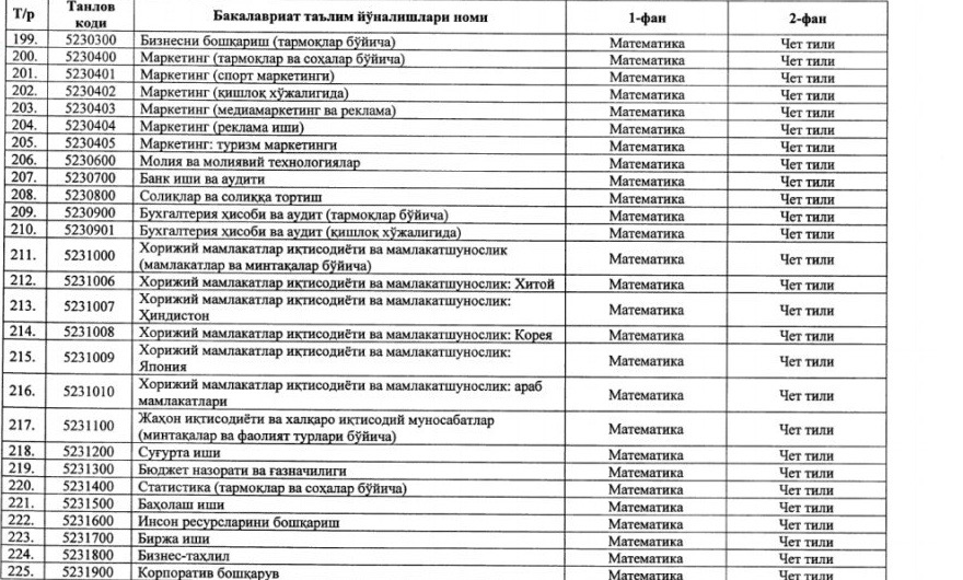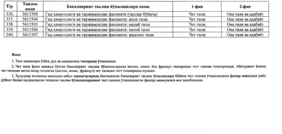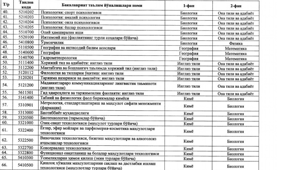 ⚡️ Утверждены новые блоки предметов и соответствующие им направления образования для вступительных тестовых испытаний 2020/2021 учебного года: