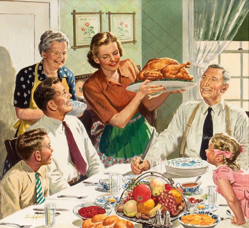Вот и ужин за большим столом.