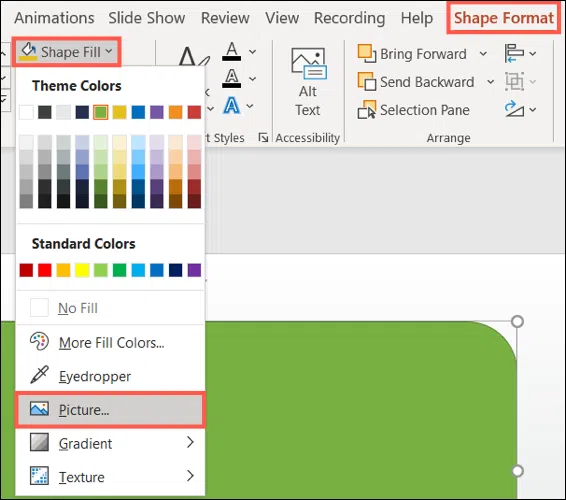 Как разместить изображение внутри формы PowerPoint