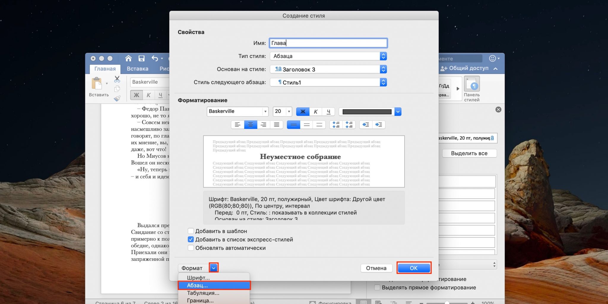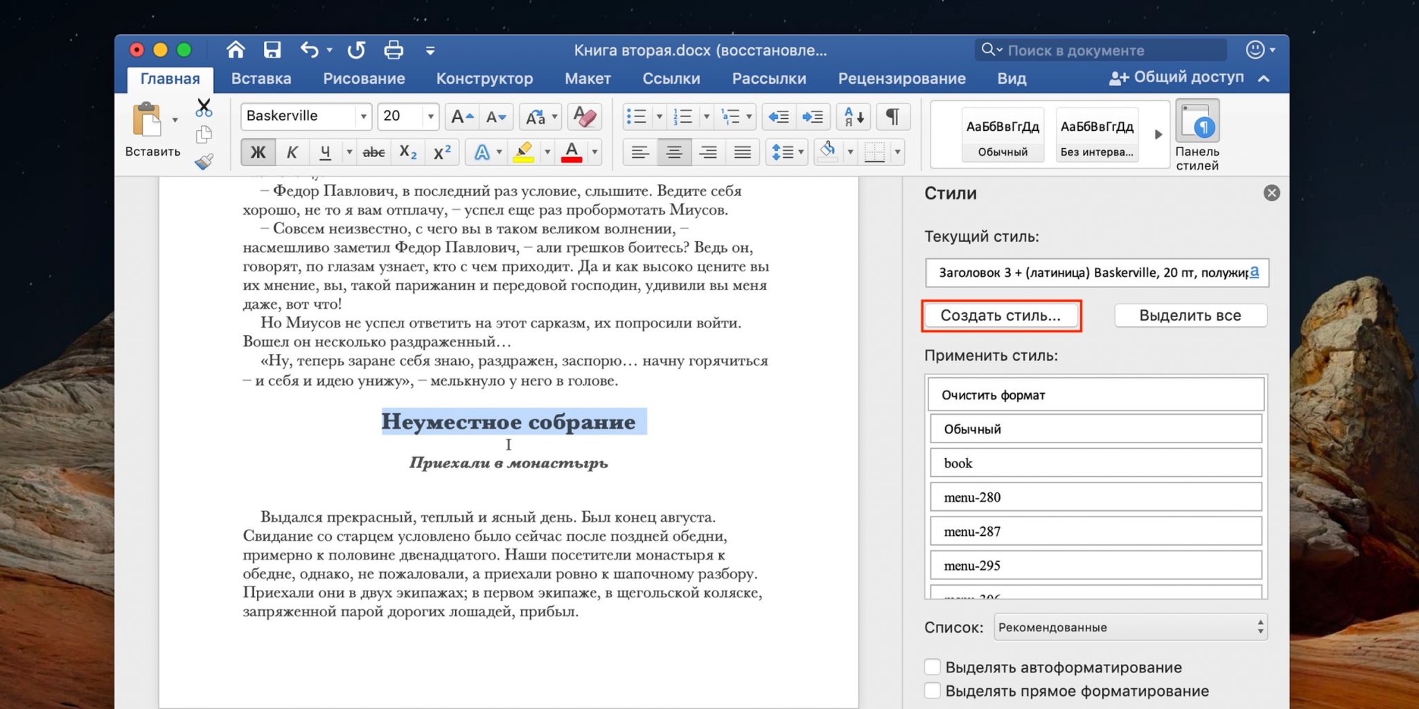 Вставить разрыв страницы клавиши