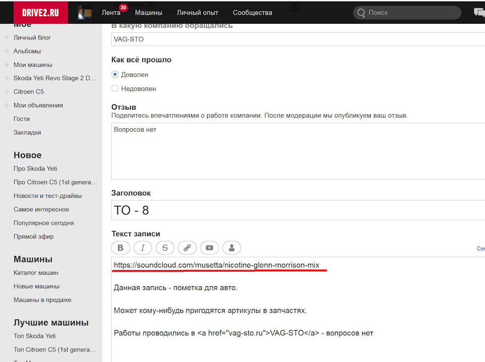 Вставка музыки в блог