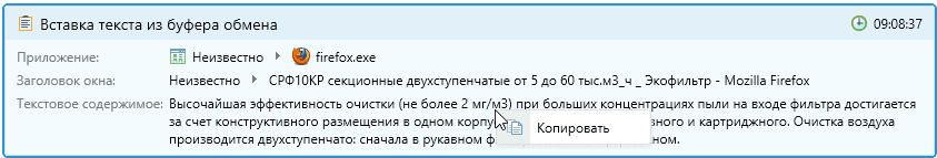 Вставка текста из буфера обмена