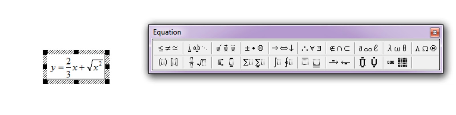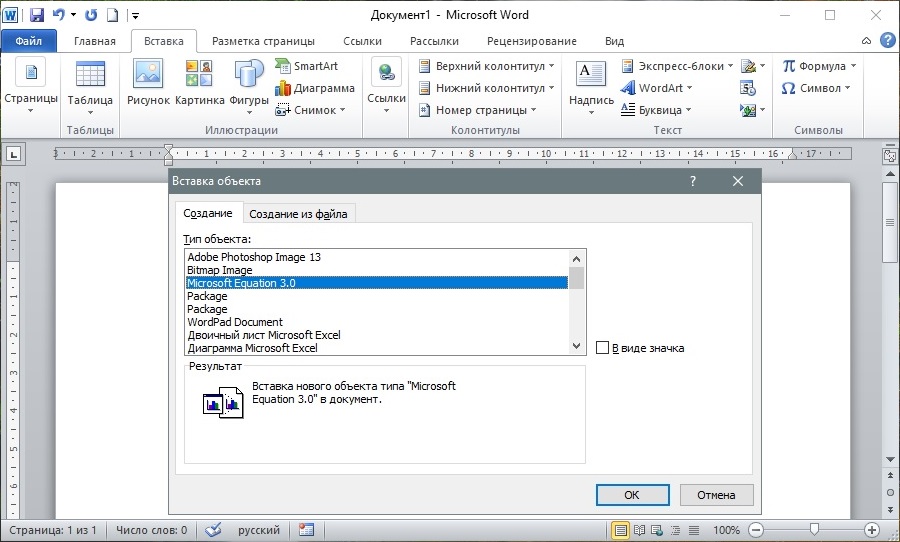 Вставки объекта microsoft equation