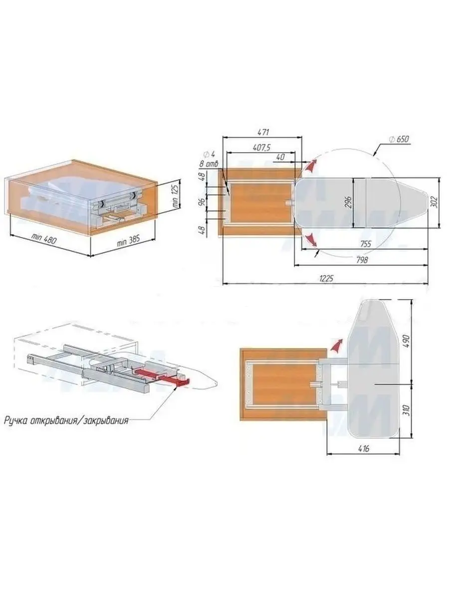 Встроенная гладильная доска размер 114 фото
