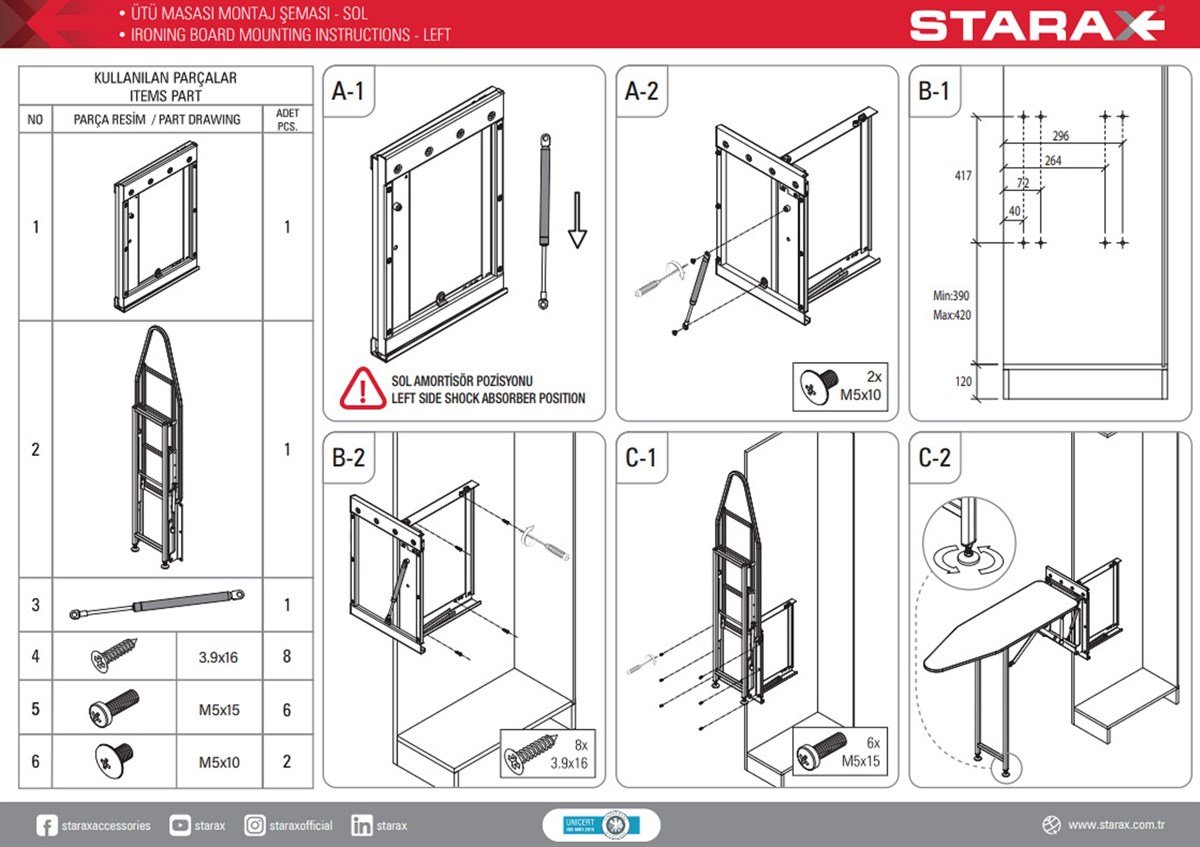 Встроенная гладильная доска размер