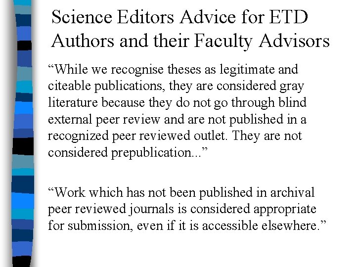 On January 1, 1997, Virginia Tech was the first university to require electronic submission of theses and dissertations (ETDs) . Ever since then, Virginia Tech graduate students have been able to prepare, submit, review, and publish their theses and dissertations online and to append digital media such as images, data, audio, and video . By Issue Date β§ Authors β§ Titles β§ Subjects β§ Search β§ Doctoral Dissertations