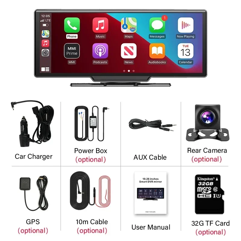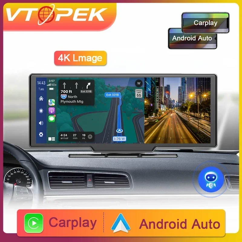 Vtopek 10.26" 4K Car Mirror Video Recording Carplay & Android Auto Wireless Connection GPS Navigation AI Voice Dashboard DVR - Купить с бесплатной доставкой