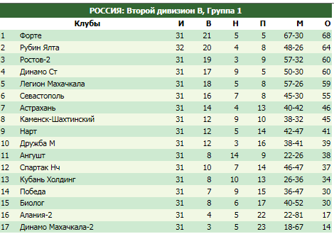 Вторая лига зона юг таблица 84 фото