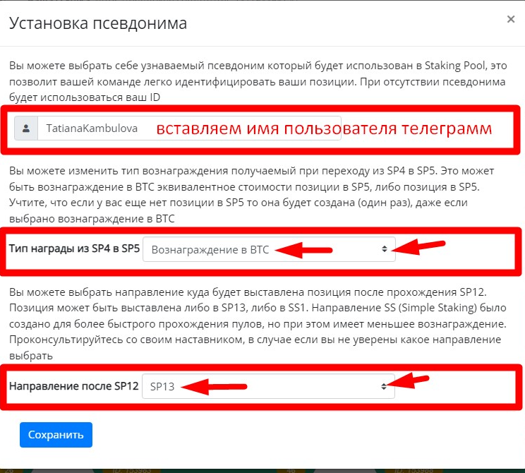 - Выбираем Вознаграждение в BTC