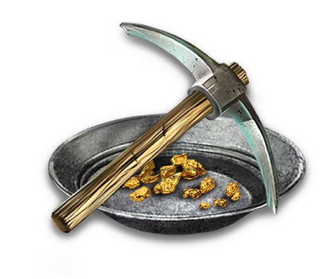 Набор Исследователя -3 пары, состоящие из золотой сковороды и кирки, так что вы можете исследовать три сюжета. Вы узнаете, есть ли на участке залежи золота, и если да, то сколько золота в них содержится.