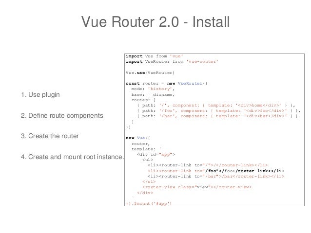 Vue Router is the official router for Vue .js . (opens new window) . It deeply integrates with Vue .js core to make building Single Page Applications with Vue .js a breeze . Features include: Nested route/view mapping . Modular, component-based router configuration . Route params, query, wildcards .