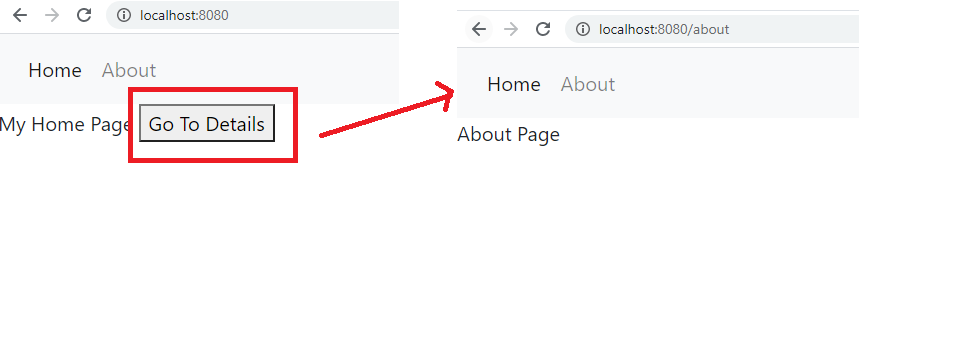 Note: Inside of a Vue instance, you have access to the router instance as $ router . You can therefore call this .$ router . push . To navigate to a different URL, use router .push . This method pushes a new entry into the history stack, so when the user clicks the browser back button they will be taken to the previous URL .