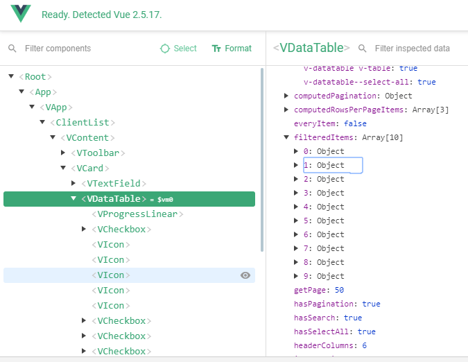 Vuetify v data table