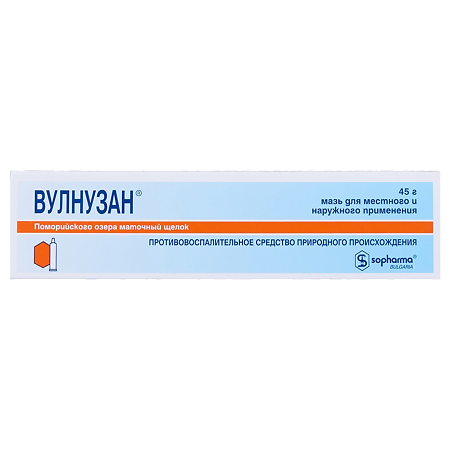Вулнузан . Цена от: 224 руб . Фото препарата . Описание актуально на 06 .10 .2015 . Латинское название: Vulnusan . Код АТХ: D11AX . Действующее вещество: Маточный щелок Поморийского соляного озера (Pomorijsky lake bees alkalines) Производитель: Pharmachim/Sopharma (Болгария) ВКонтакте .