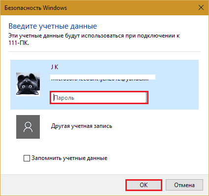 Введите сетевые учетные данные