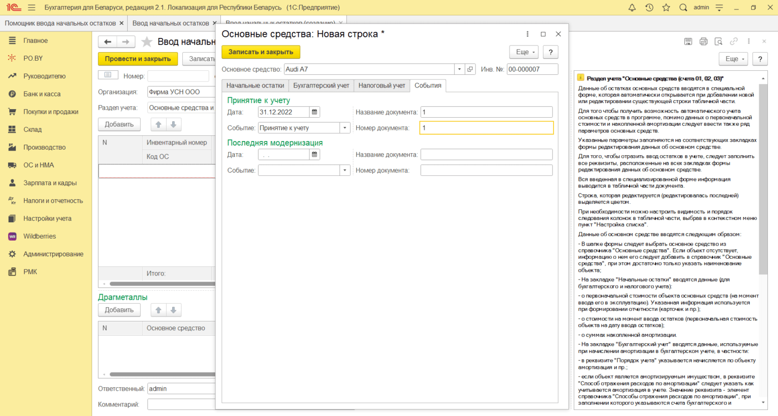 Ввод остатков усн 1с 8.3