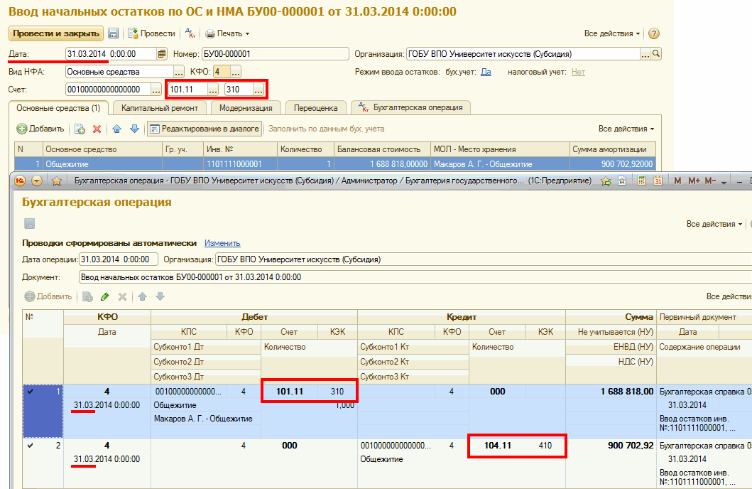 Ввод остатков уставной капитал