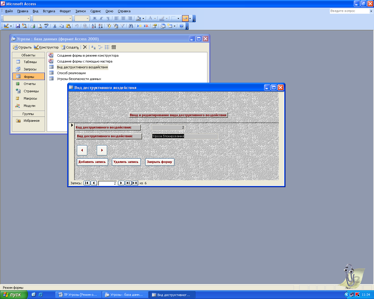 Ввод редактирование данных в access
