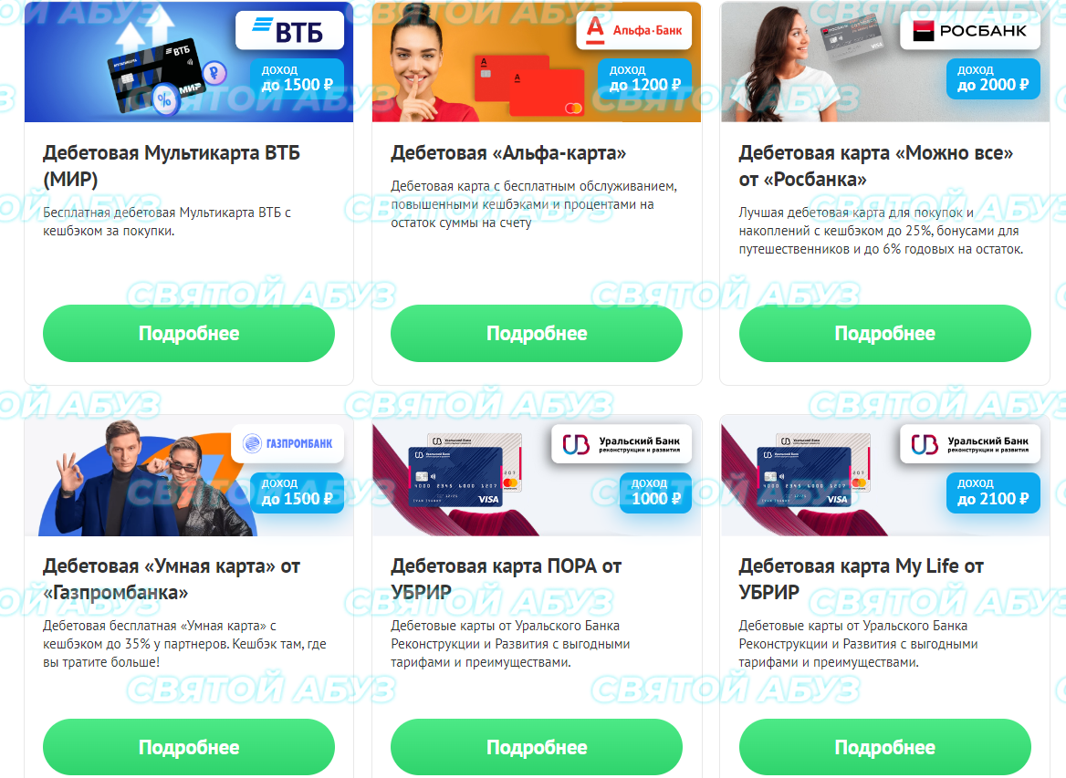 Как видим - на одного человека можно собрать продуктов на сумму до 50-60к, но большая часть из них сложна для понимания и требует вложений, поэтому для новичков идеальным вариантом будет оформление дебетовых карт, поскольку они требуют минимальных временных и финансовых затрат (перешел по ссылке, оставил заявку, получил курьером бесплатную карту, активировал, получил выплату за ЦД).