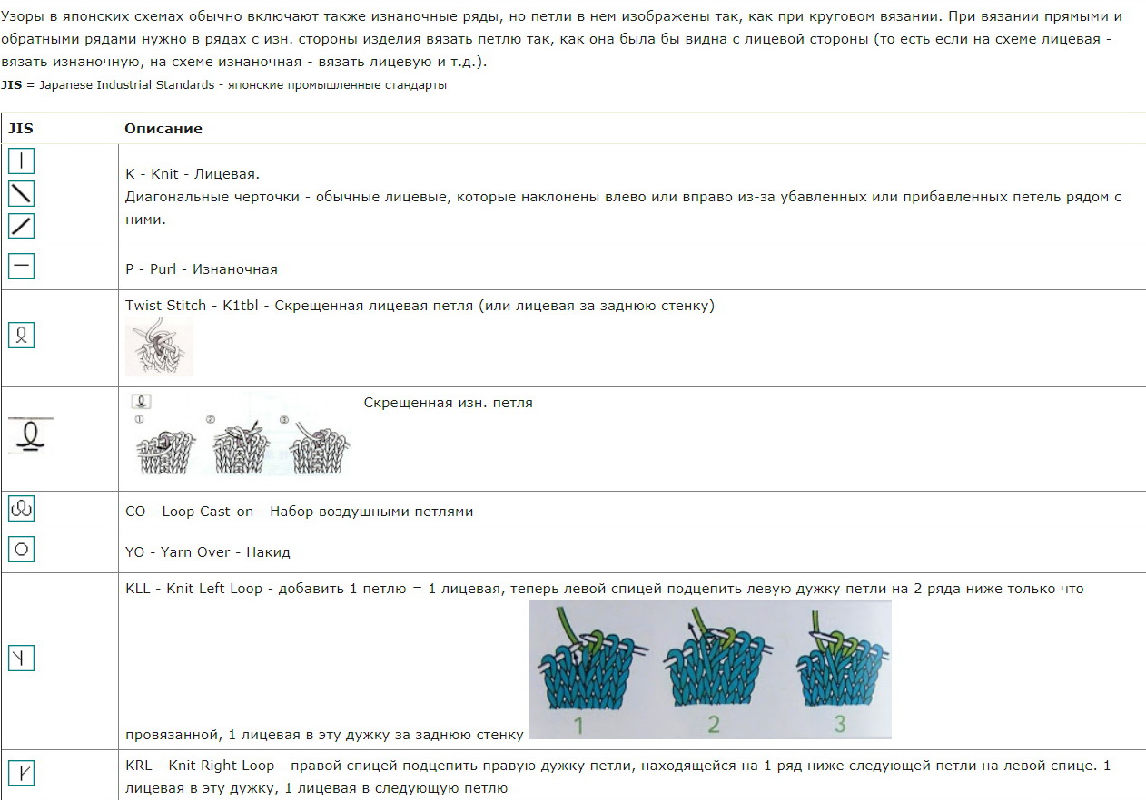 Вязание спицами японские обозначения