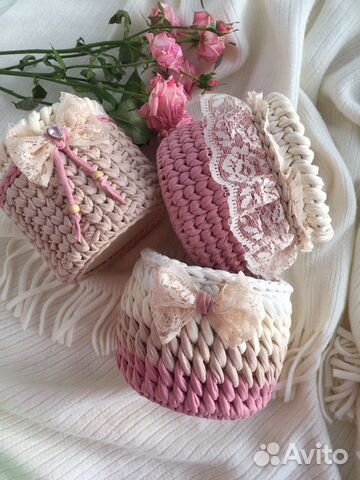 Корзины из трикотажной пряжи (60 фото)