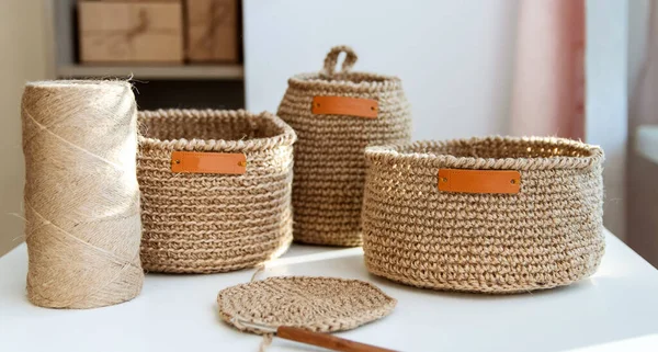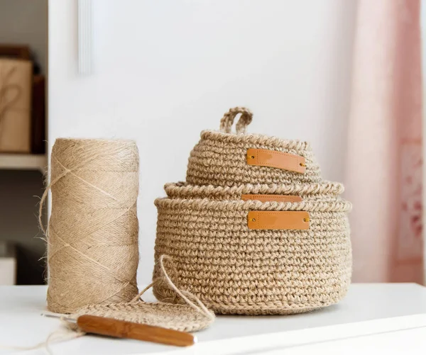 Вязаные корзины из джута (53 фото) Декор из джутовой веревки Плетеные корзины в интерьере квартиры