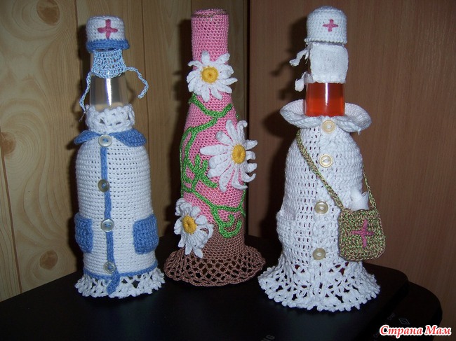 Вязаные бутылки крючком