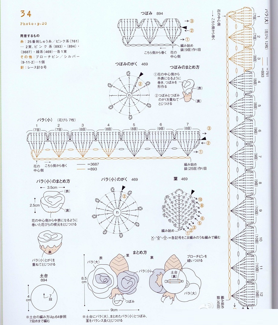 Вязаные розы крючком схемы