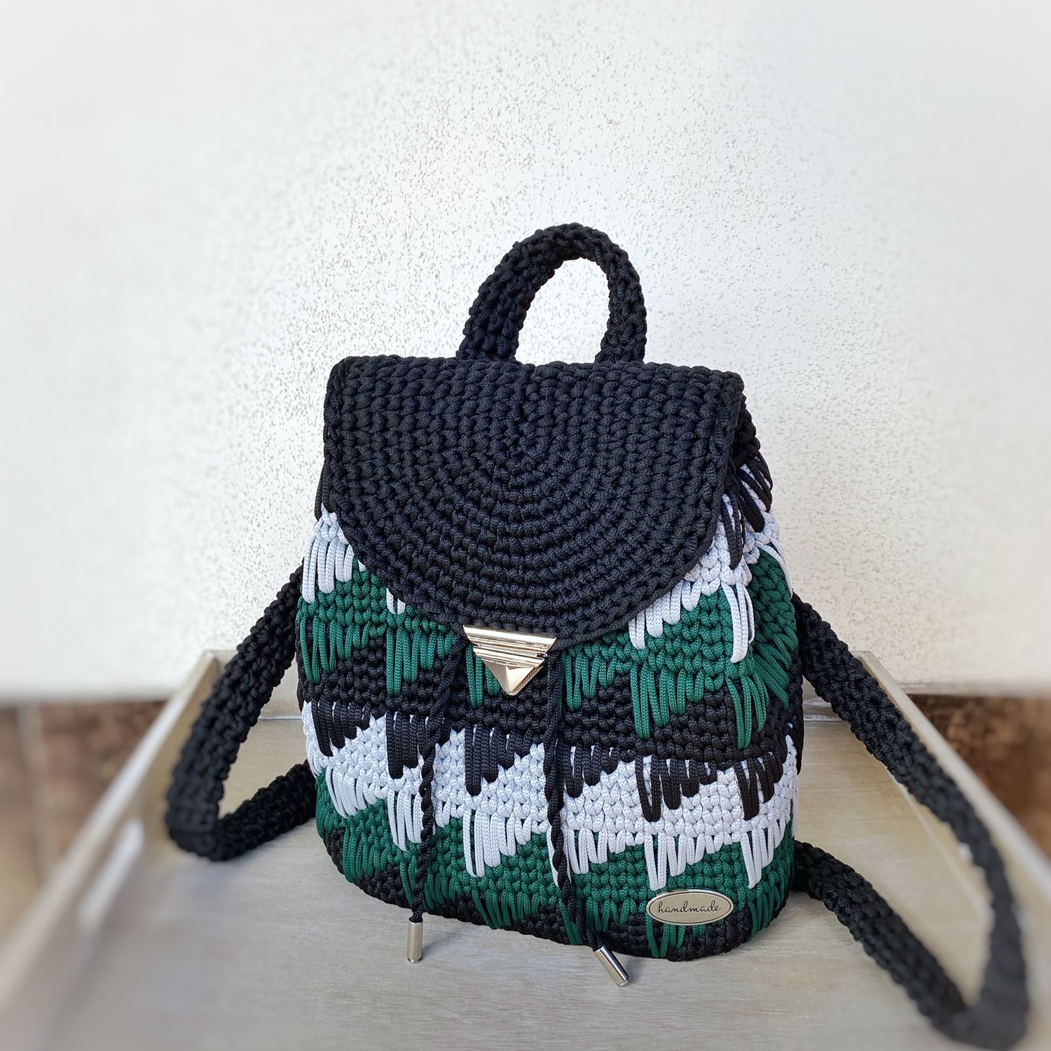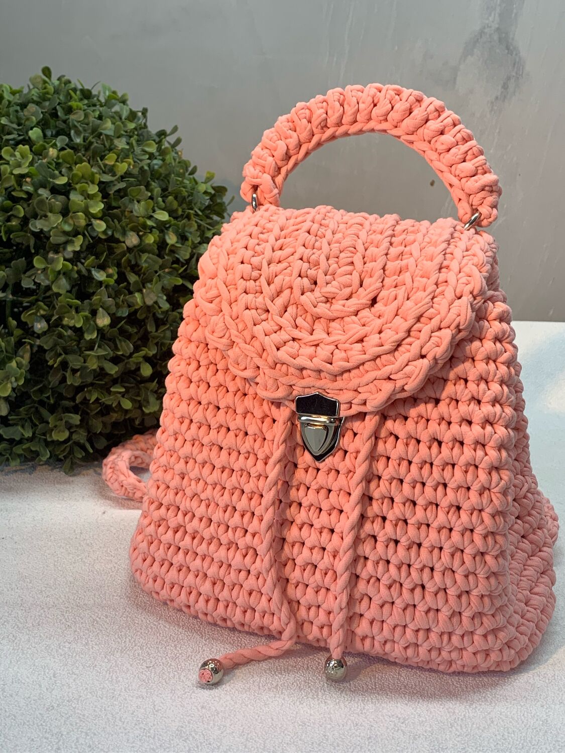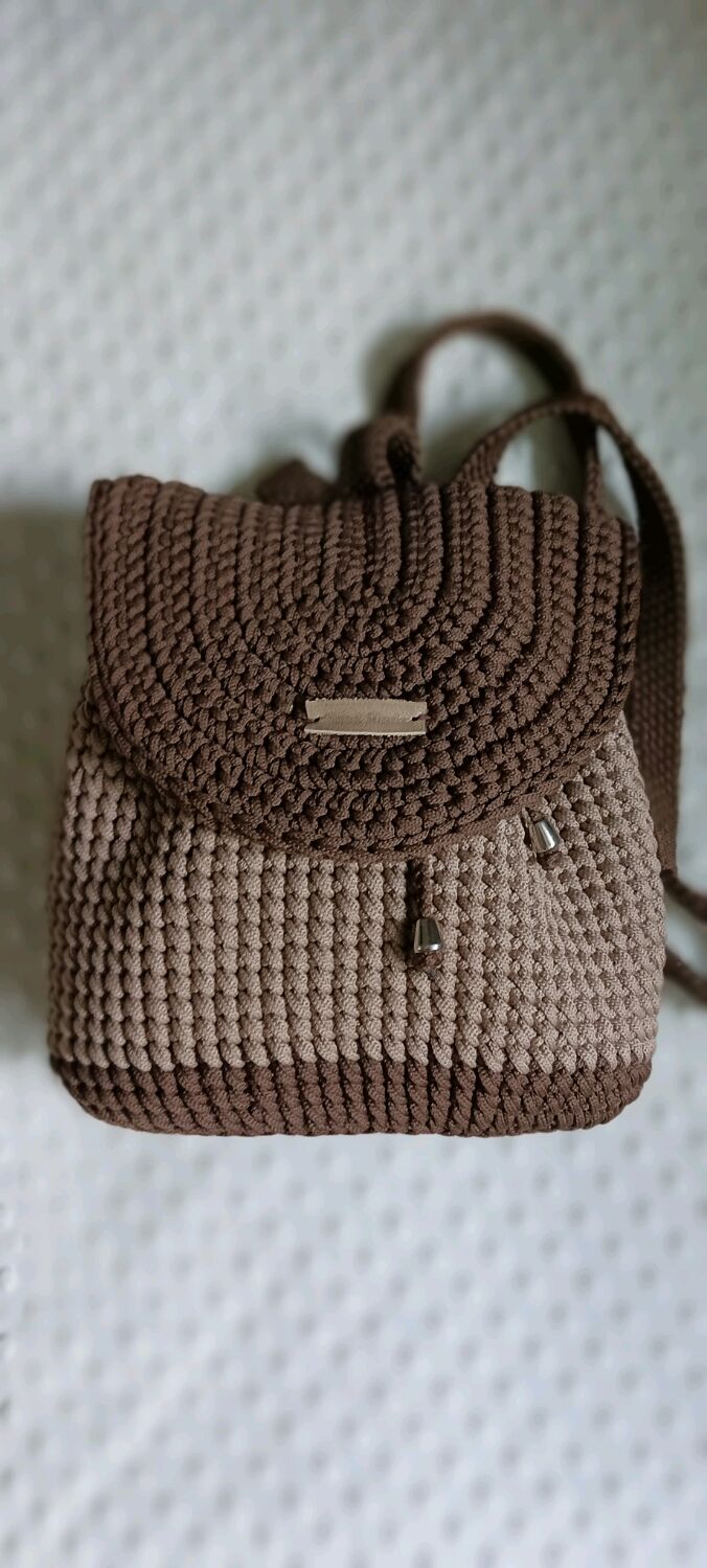 Вязаный рюкзак шнуром