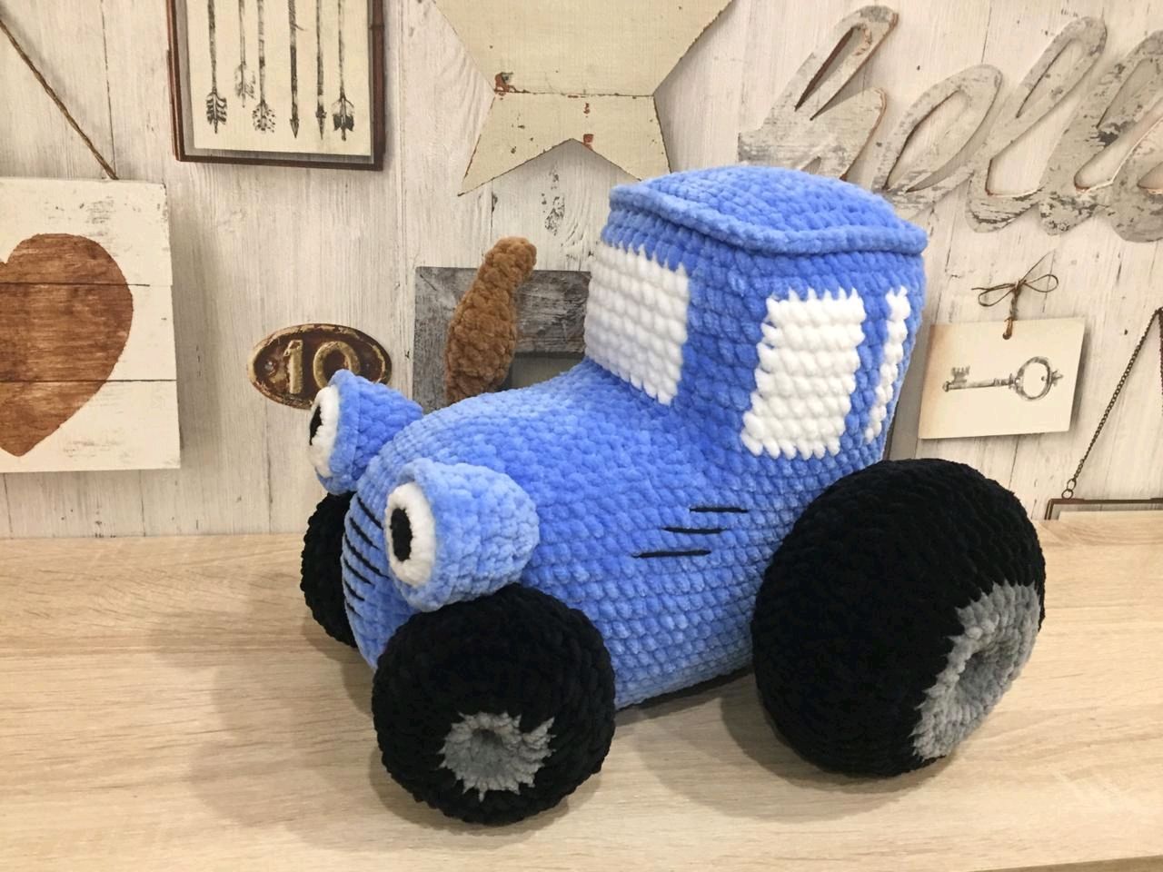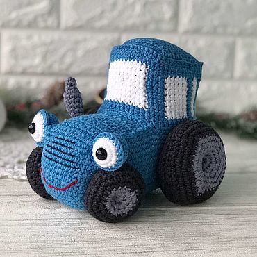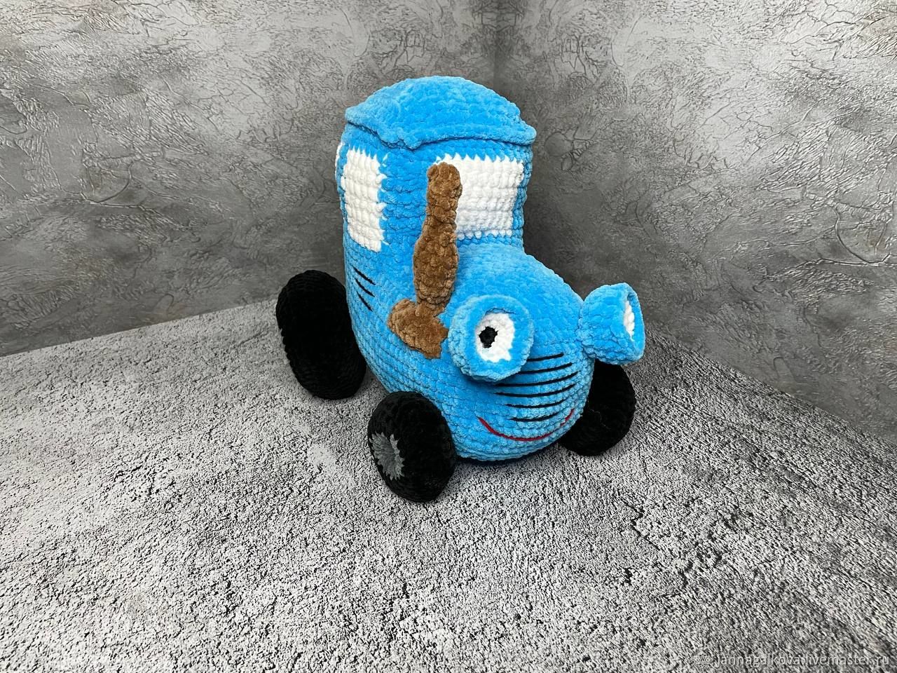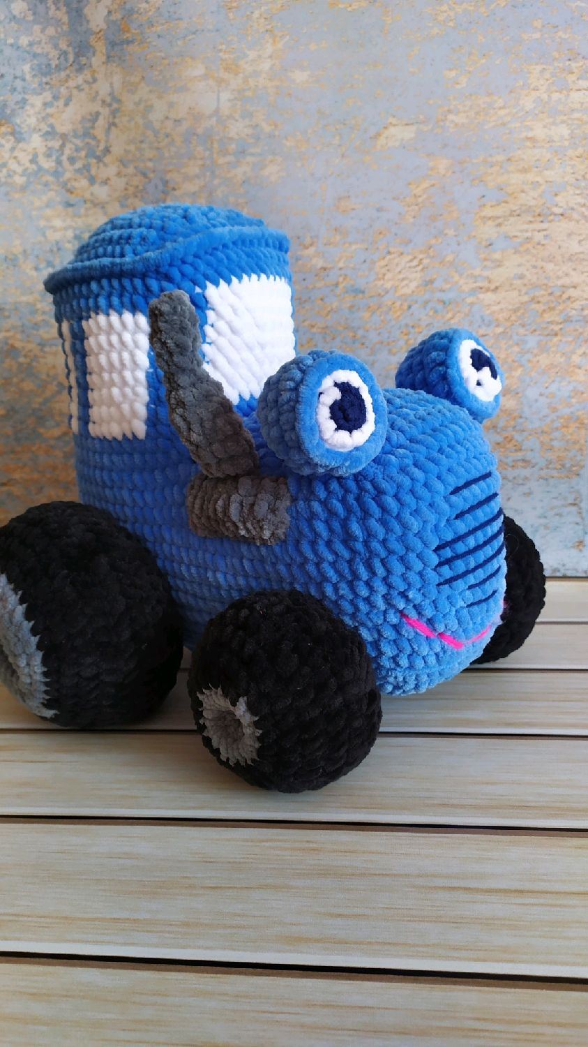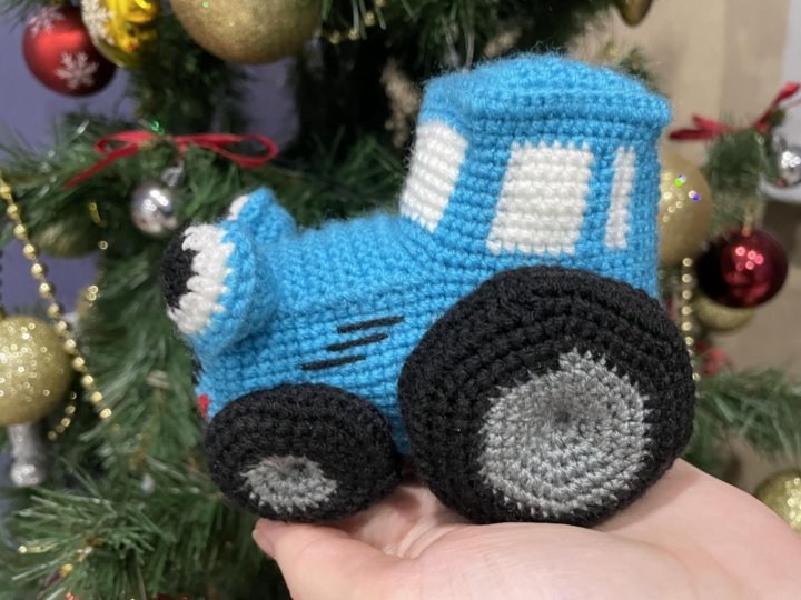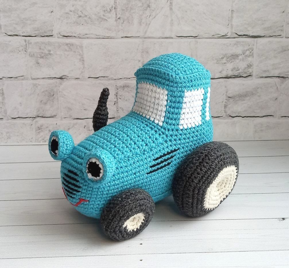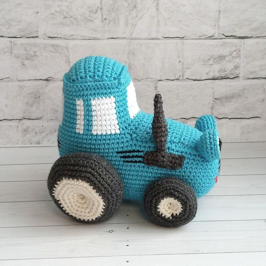 Вязаный синий трактор
