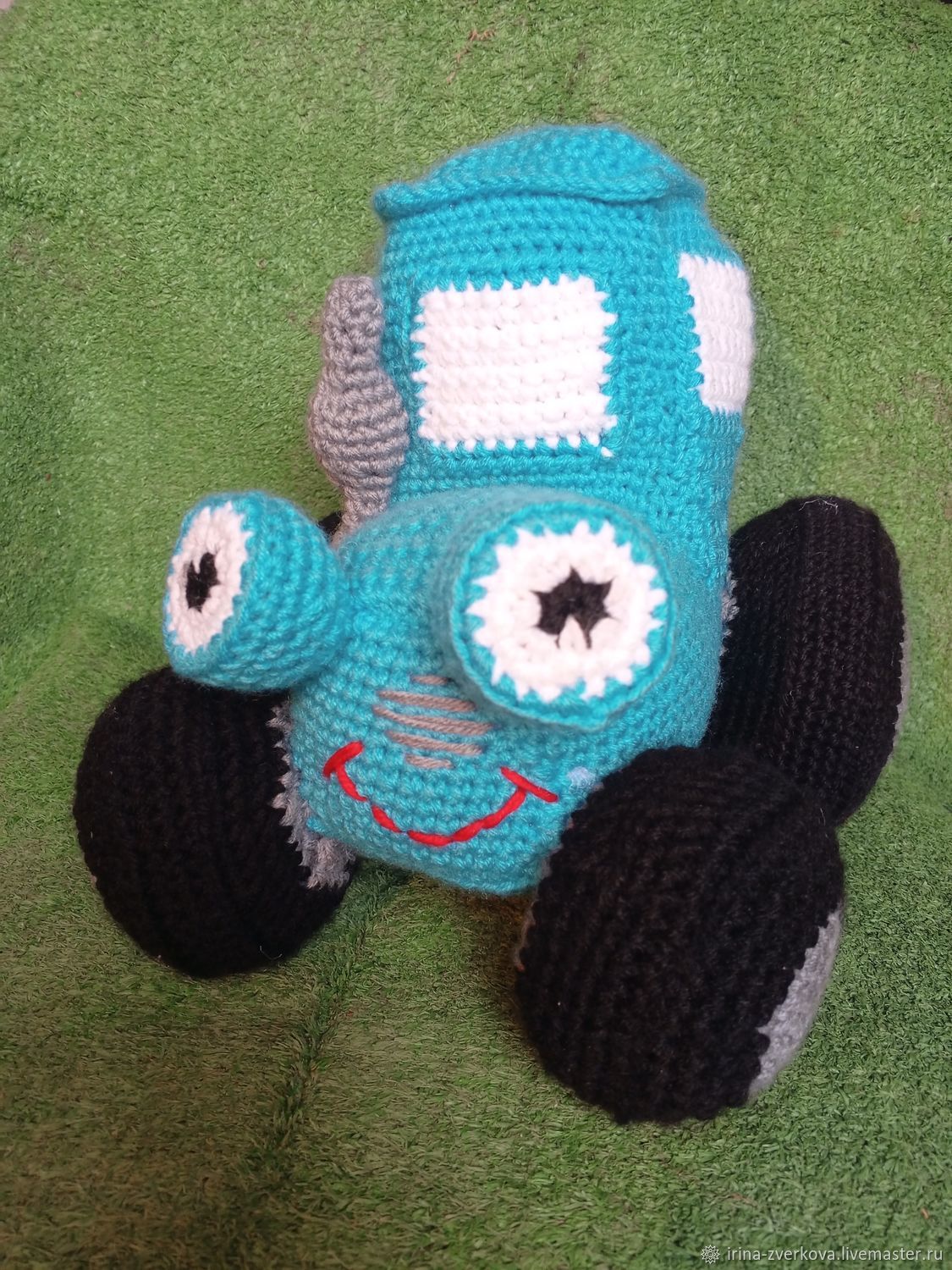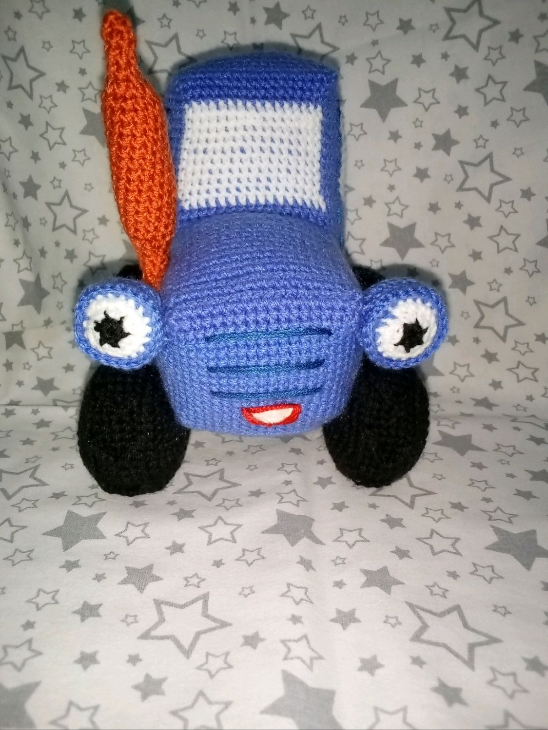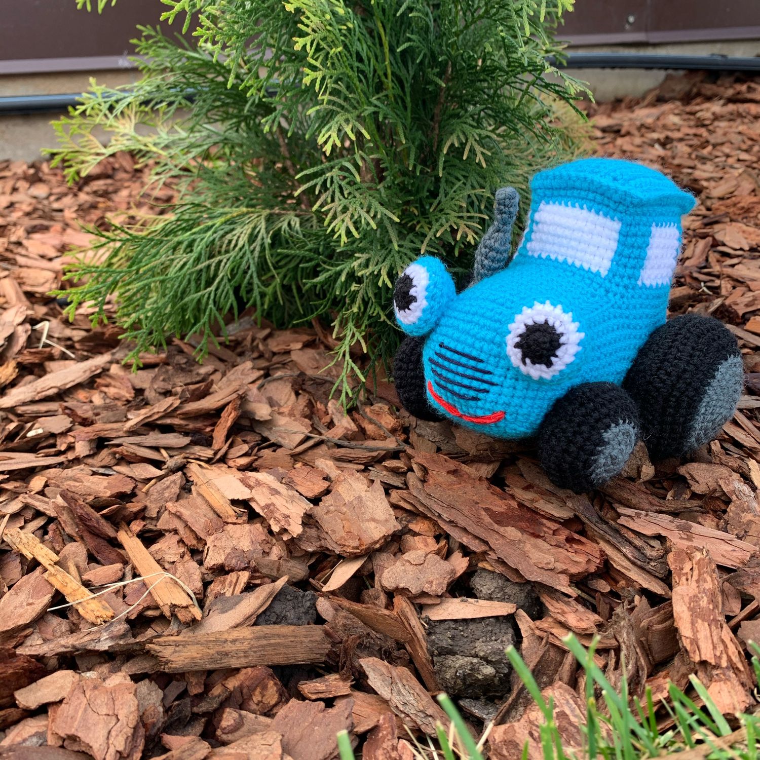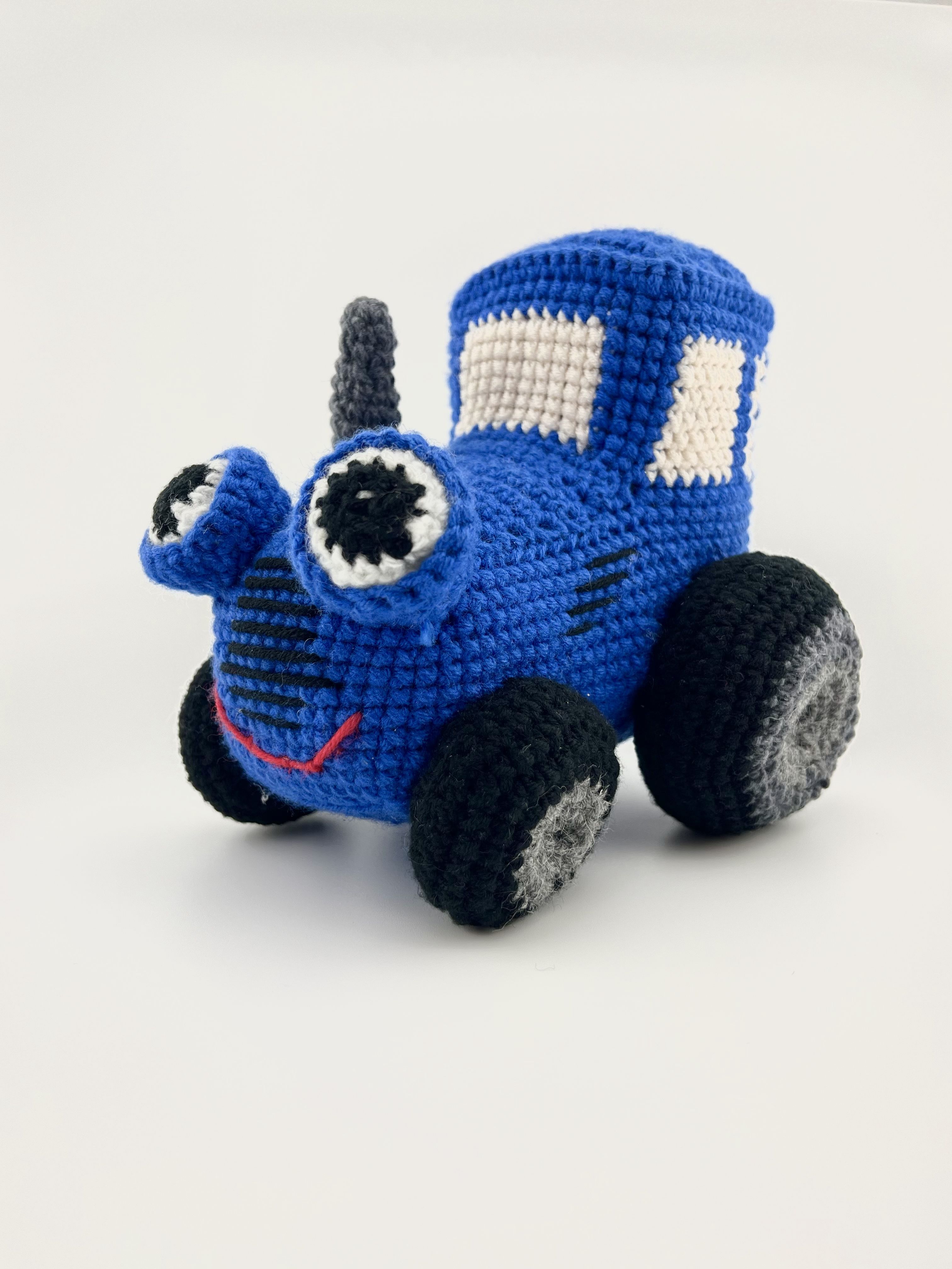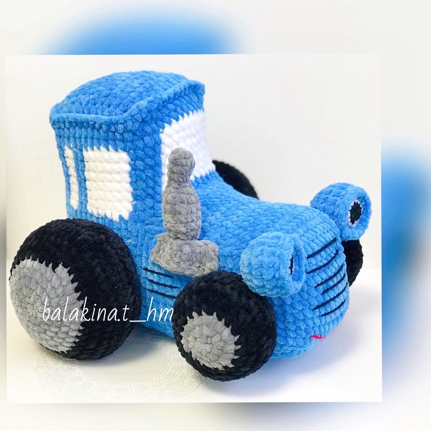 Вязаный синий трактор