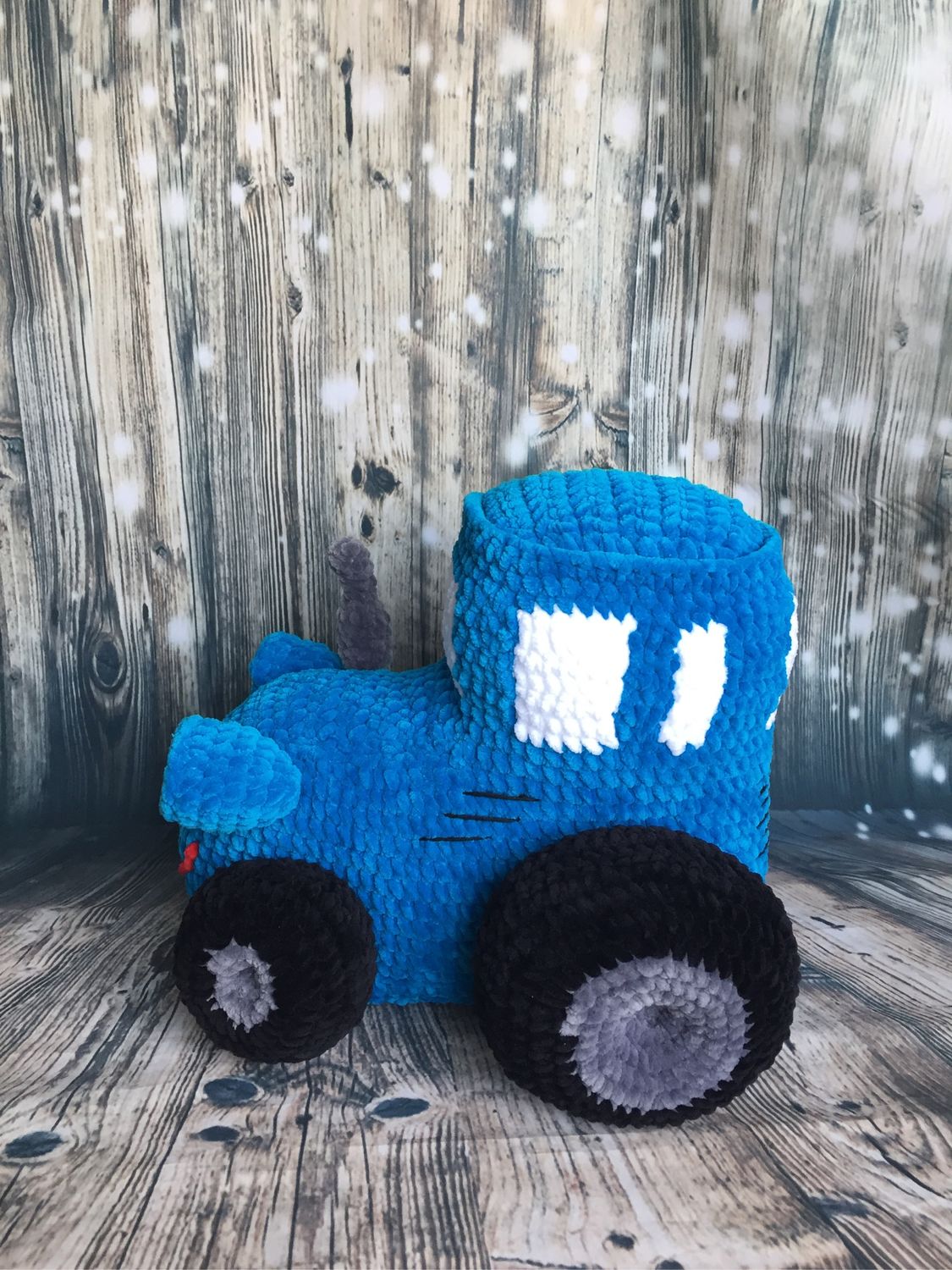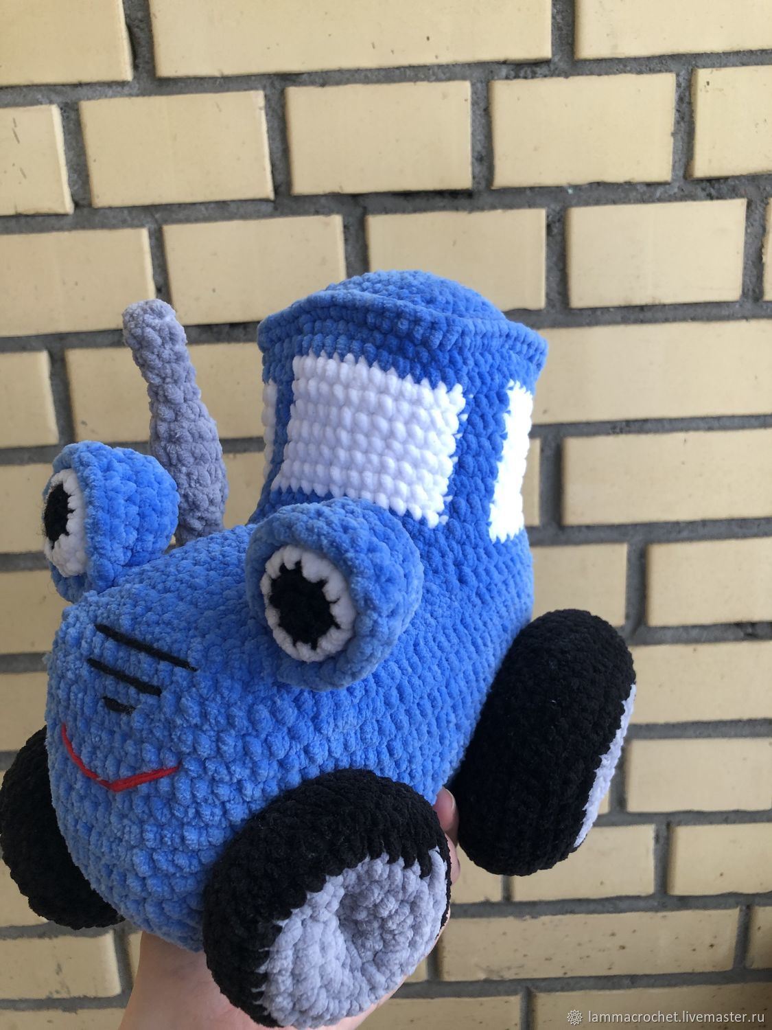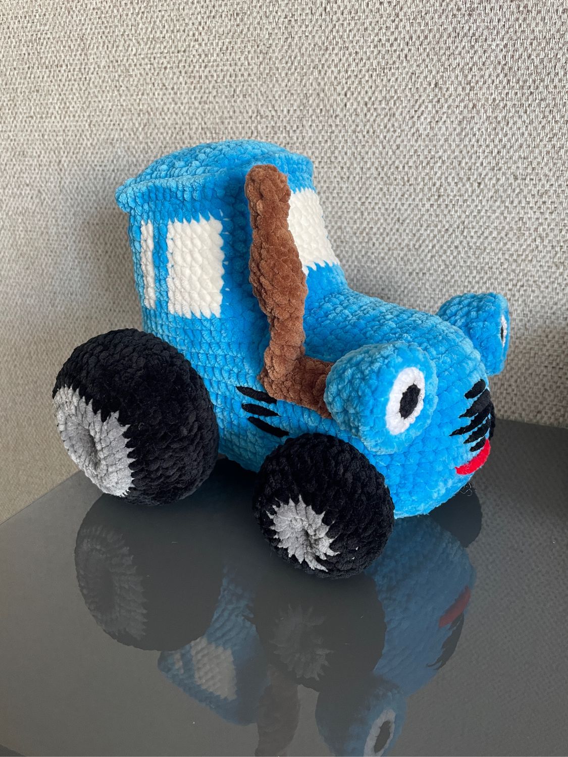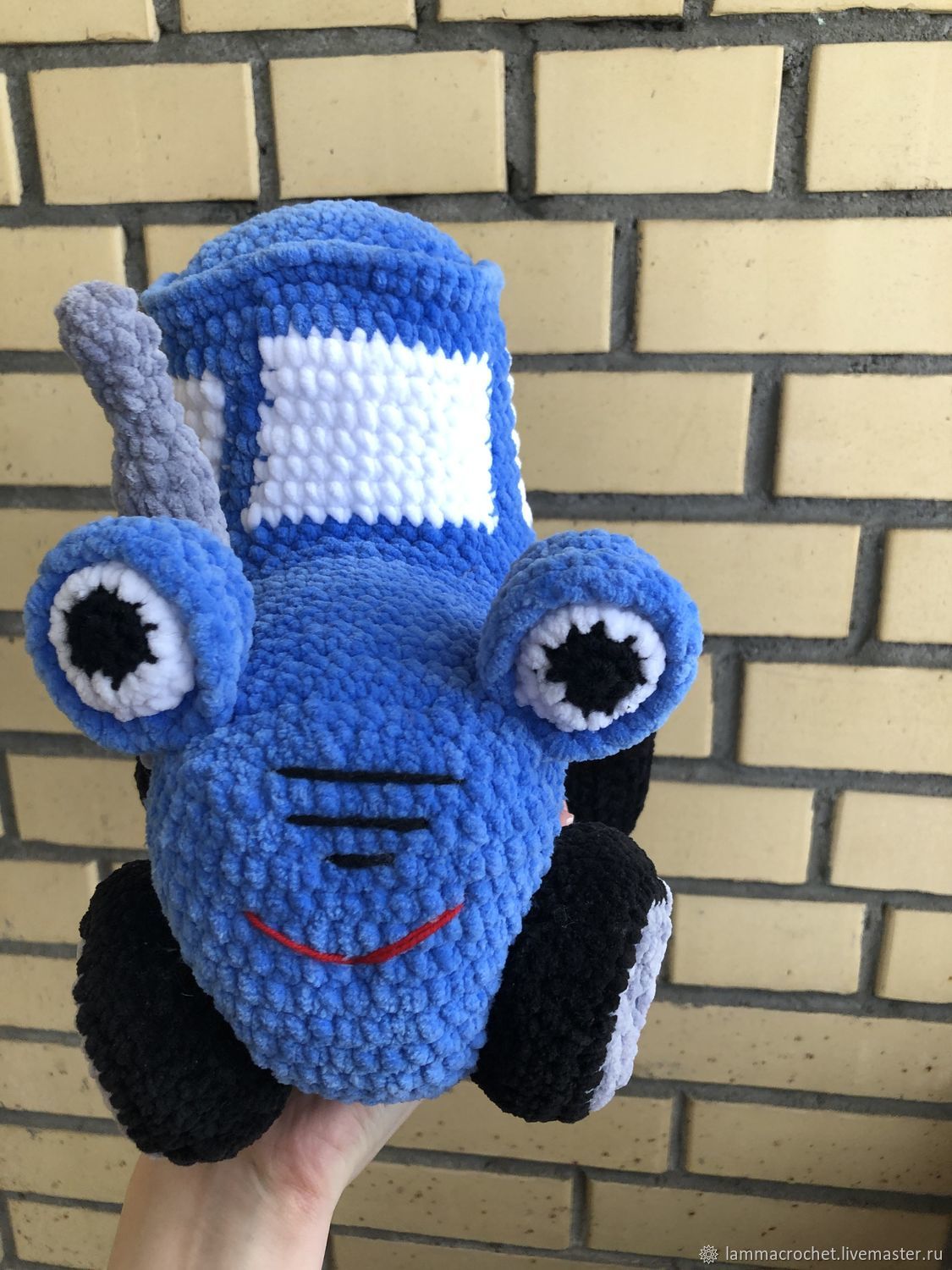 Вязаный синий трактор