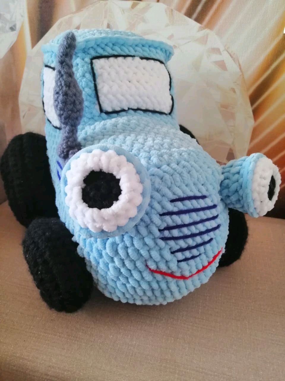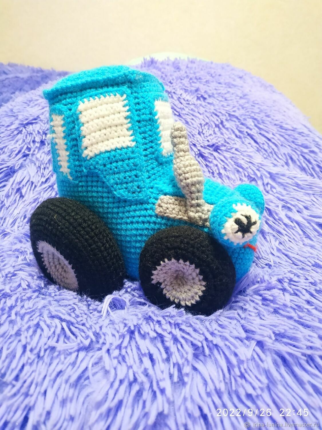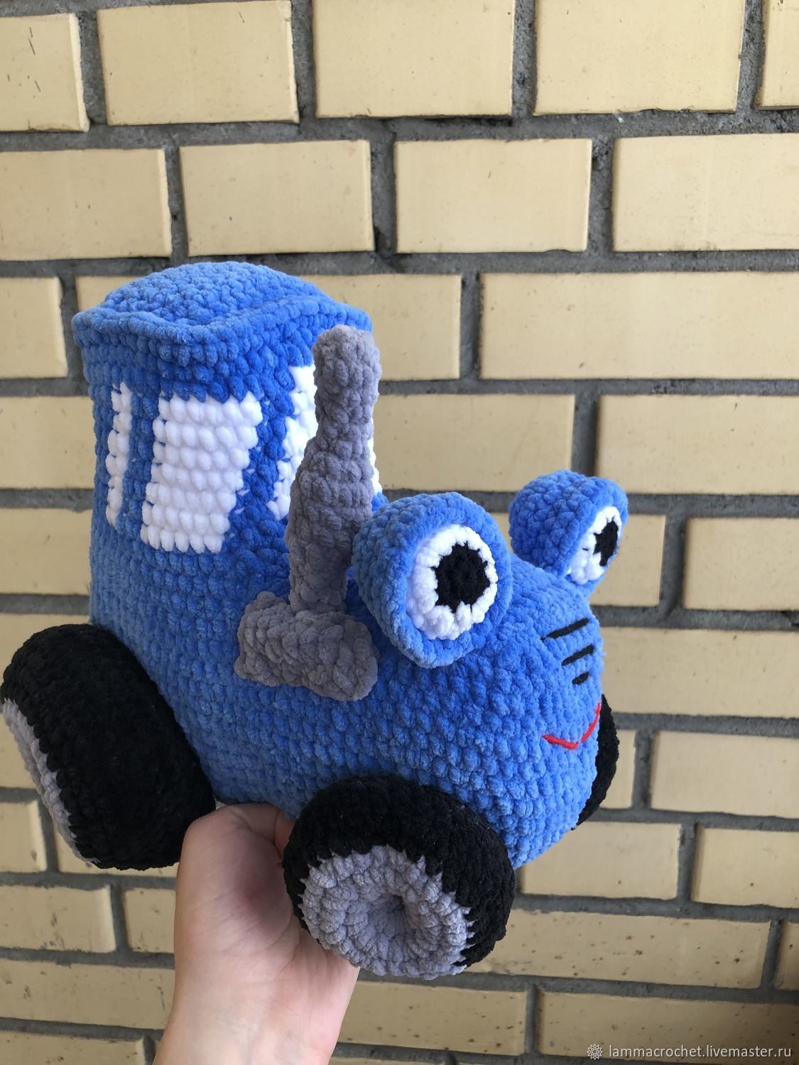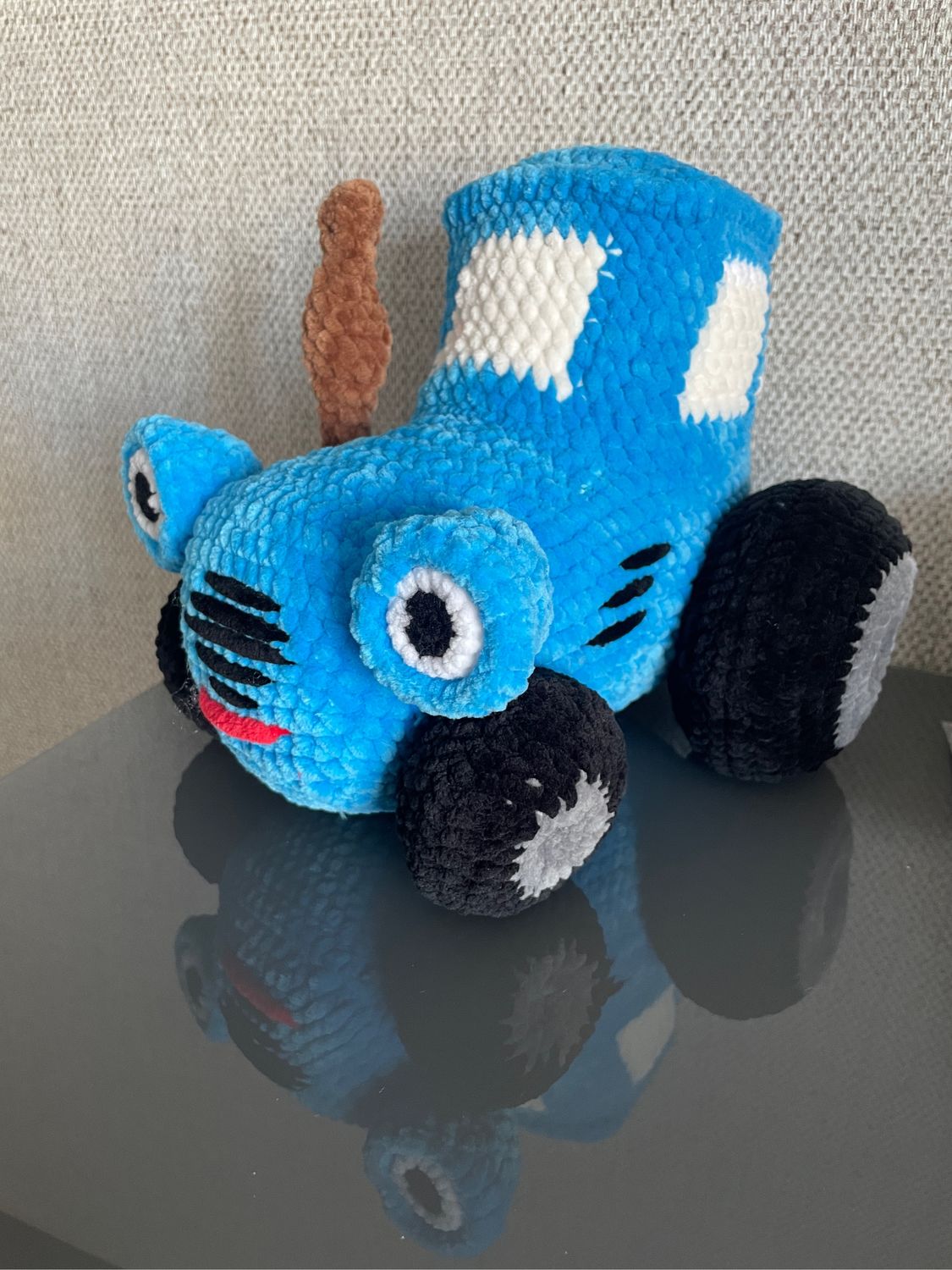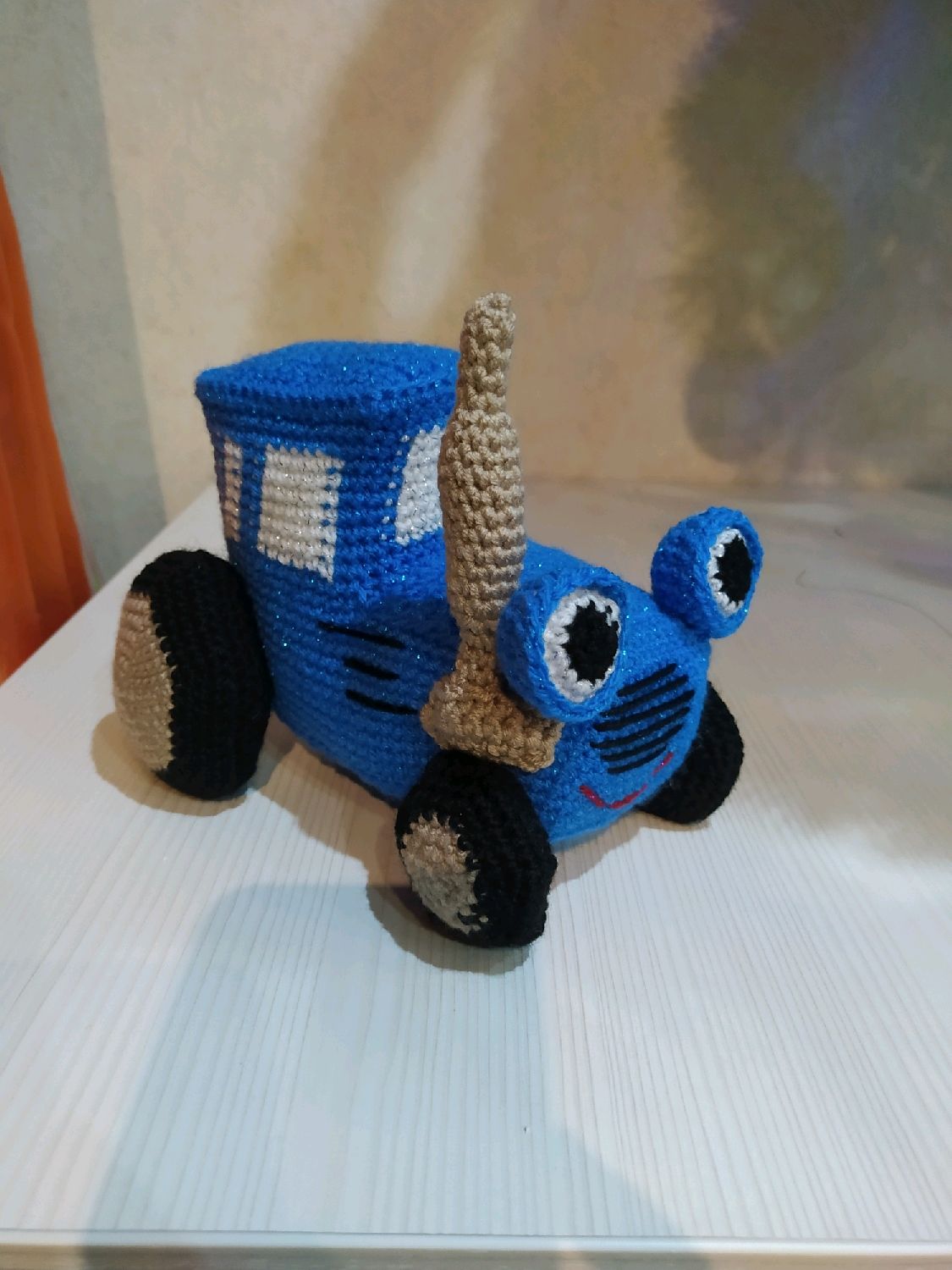 Вязаный синий трактор
